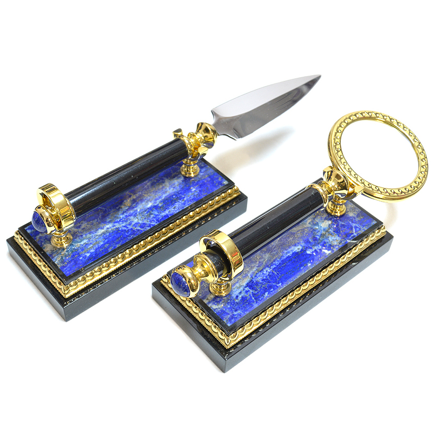 Материал: лазурит, долерит, бронза, латунь, никель, золото.