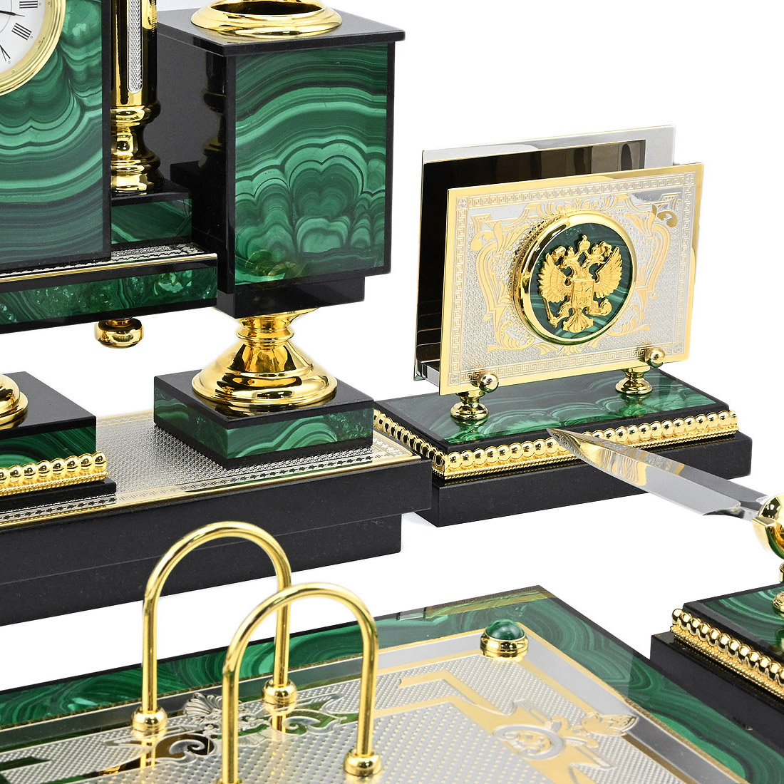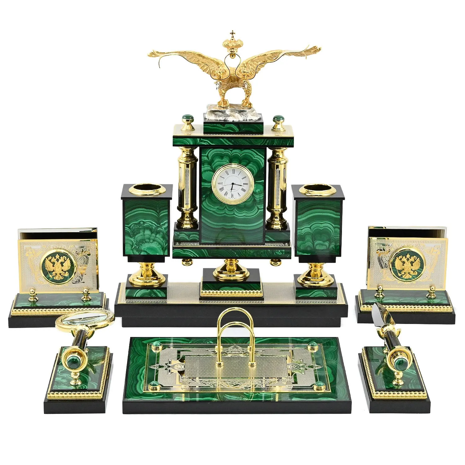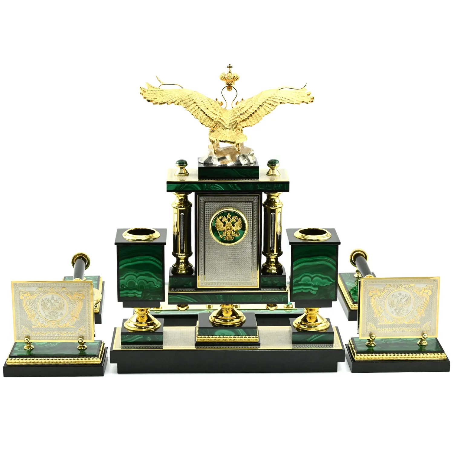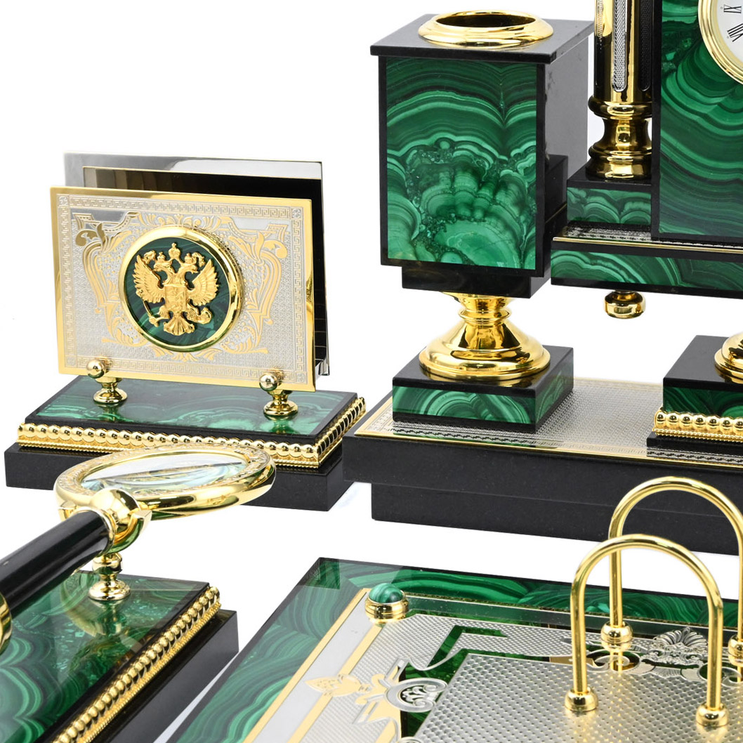 Настольный набор из малахита "Двуглавый орел"