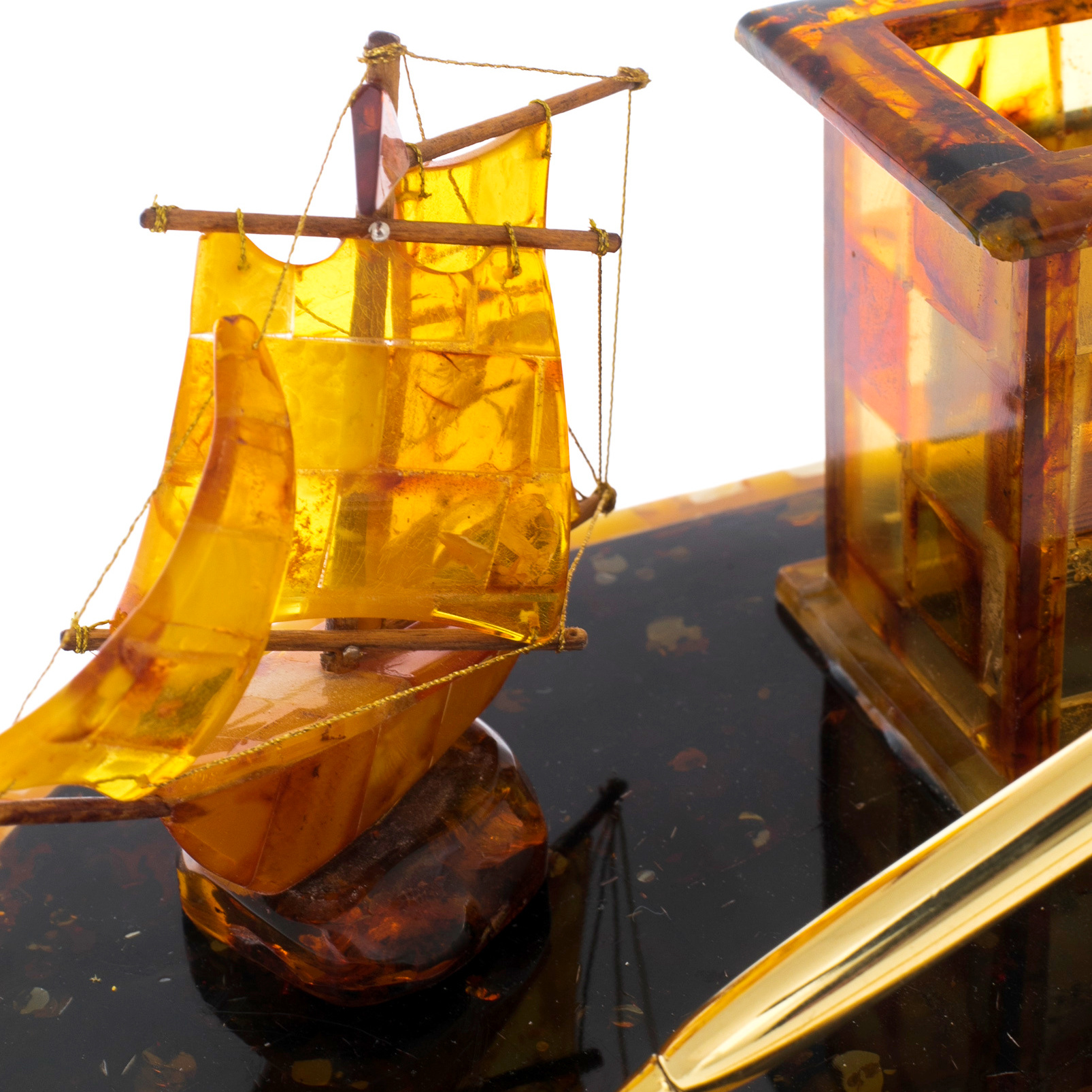 Янтарь – волшебный камень, сочетающий в себе целебные и магические свойства, роскошь и тепло. Большинство знаменитых личностей окружали себя янтарем: янтарная комната Петра 1 и корона египетского фараона Тутанхамона - это лишь начало списка. Посуда из янтаря является неизменным атрибутом сервировки стола на аристократических обедах и приемах. Изящные изделия вписываются в любой интерьер. Сочетание янтаря с серебром или бронзой выгодно подчеркивает красоту камня и благородный блеск драгоценных металлов.