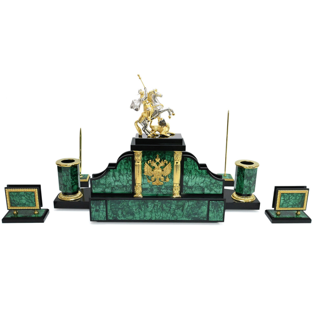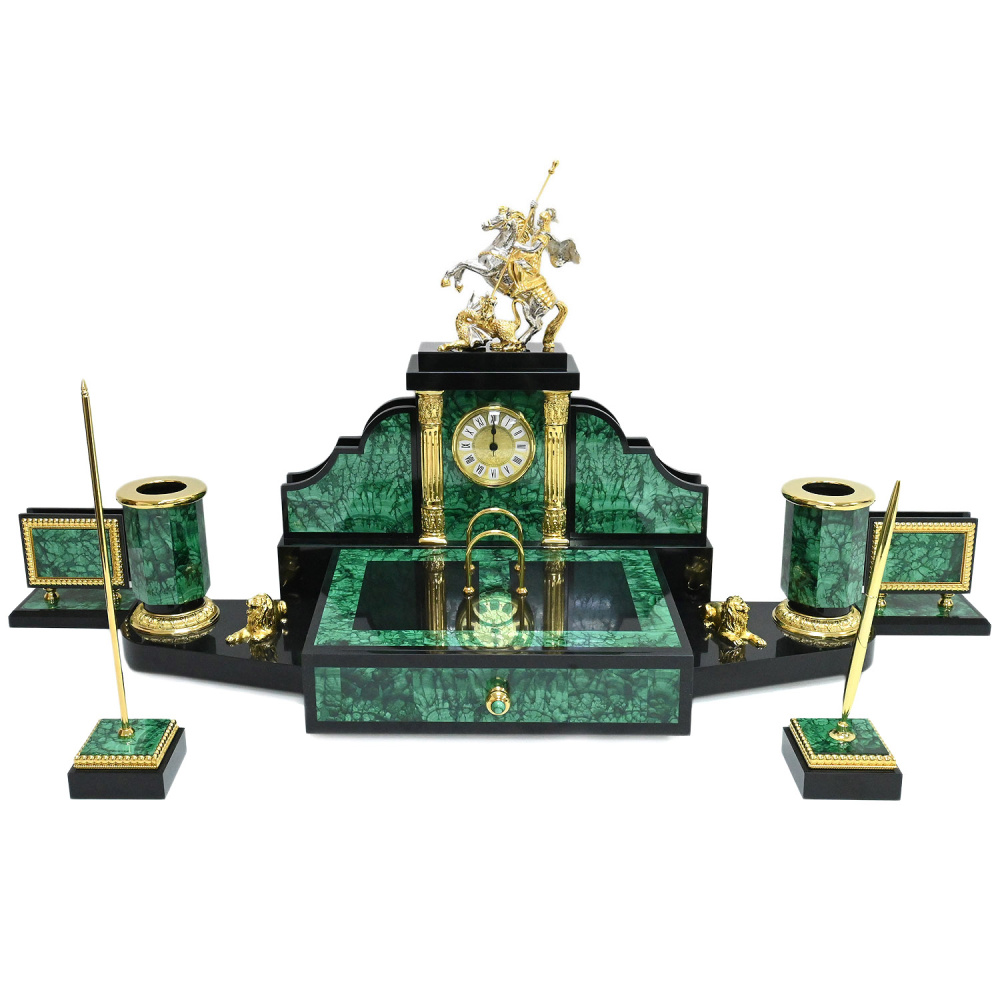 Настольный набор из малахита "Георгий Победоносец"