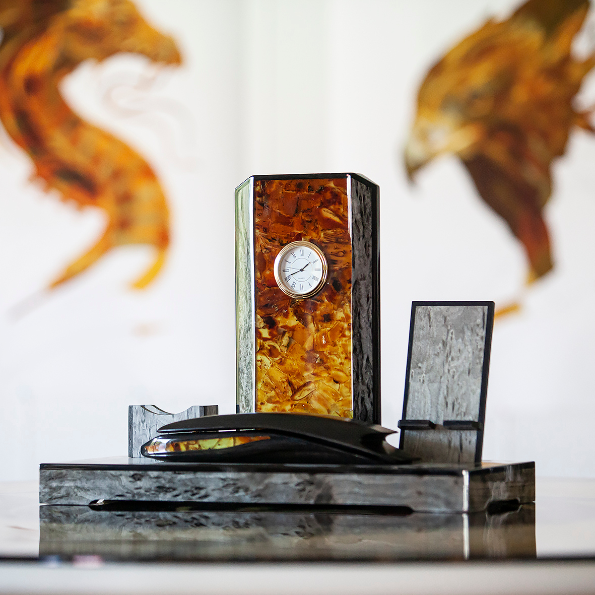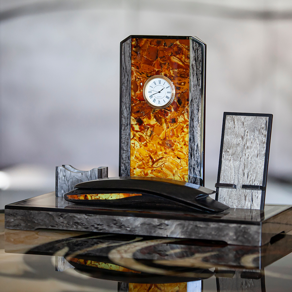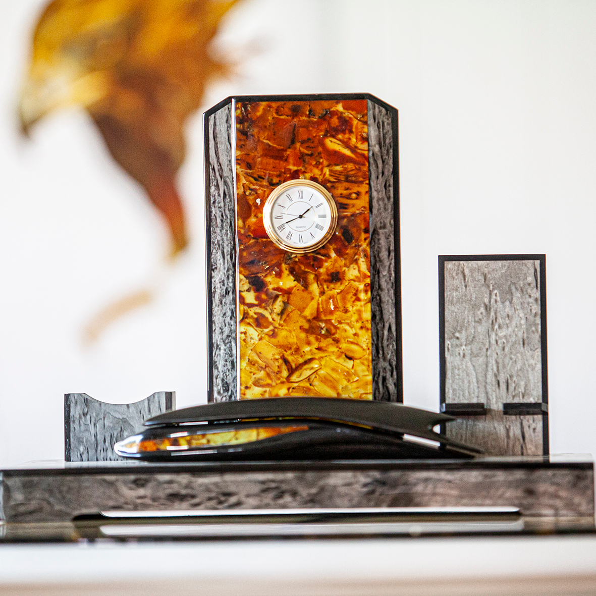 Письменный набор из березы и янтаря "Стандарт", коричневый