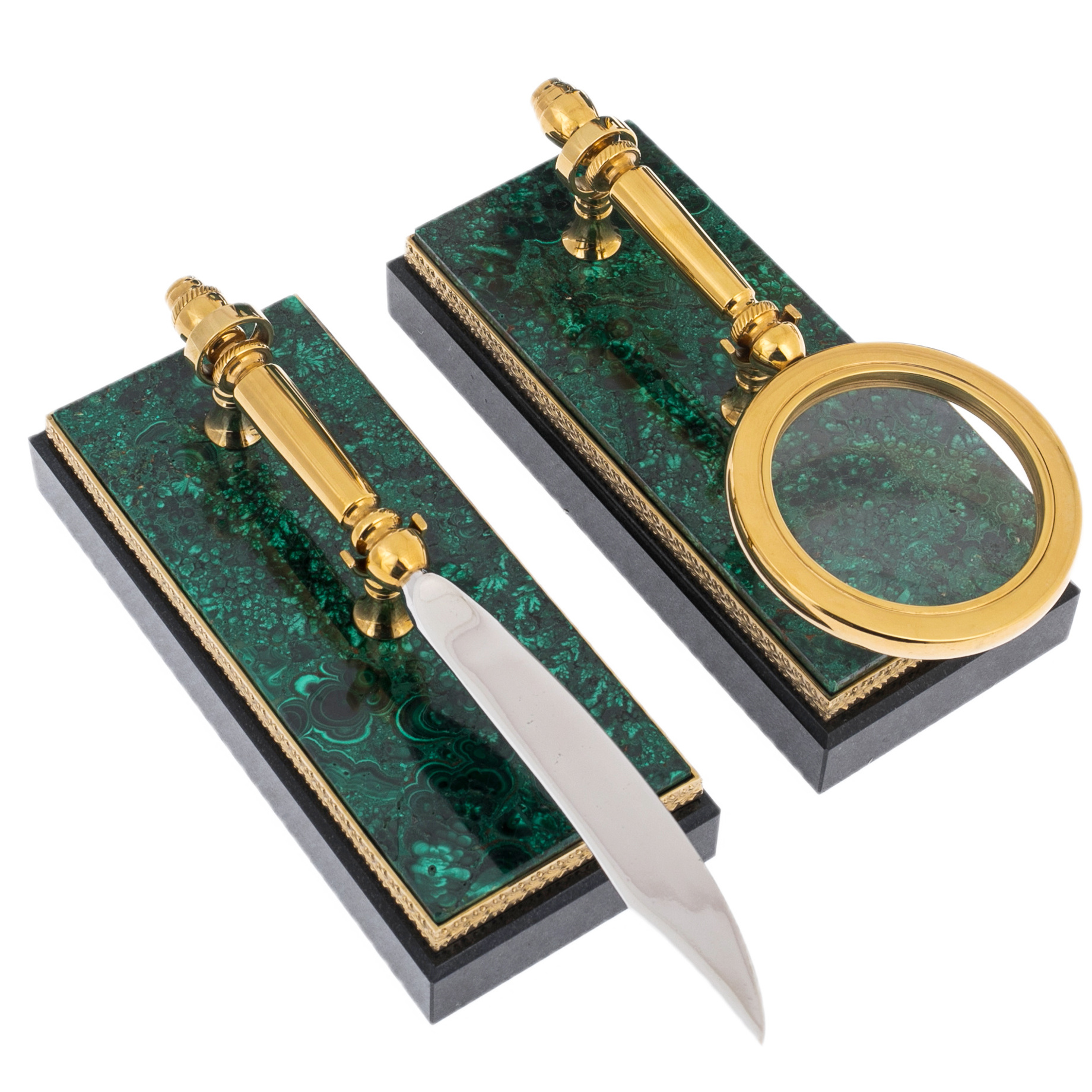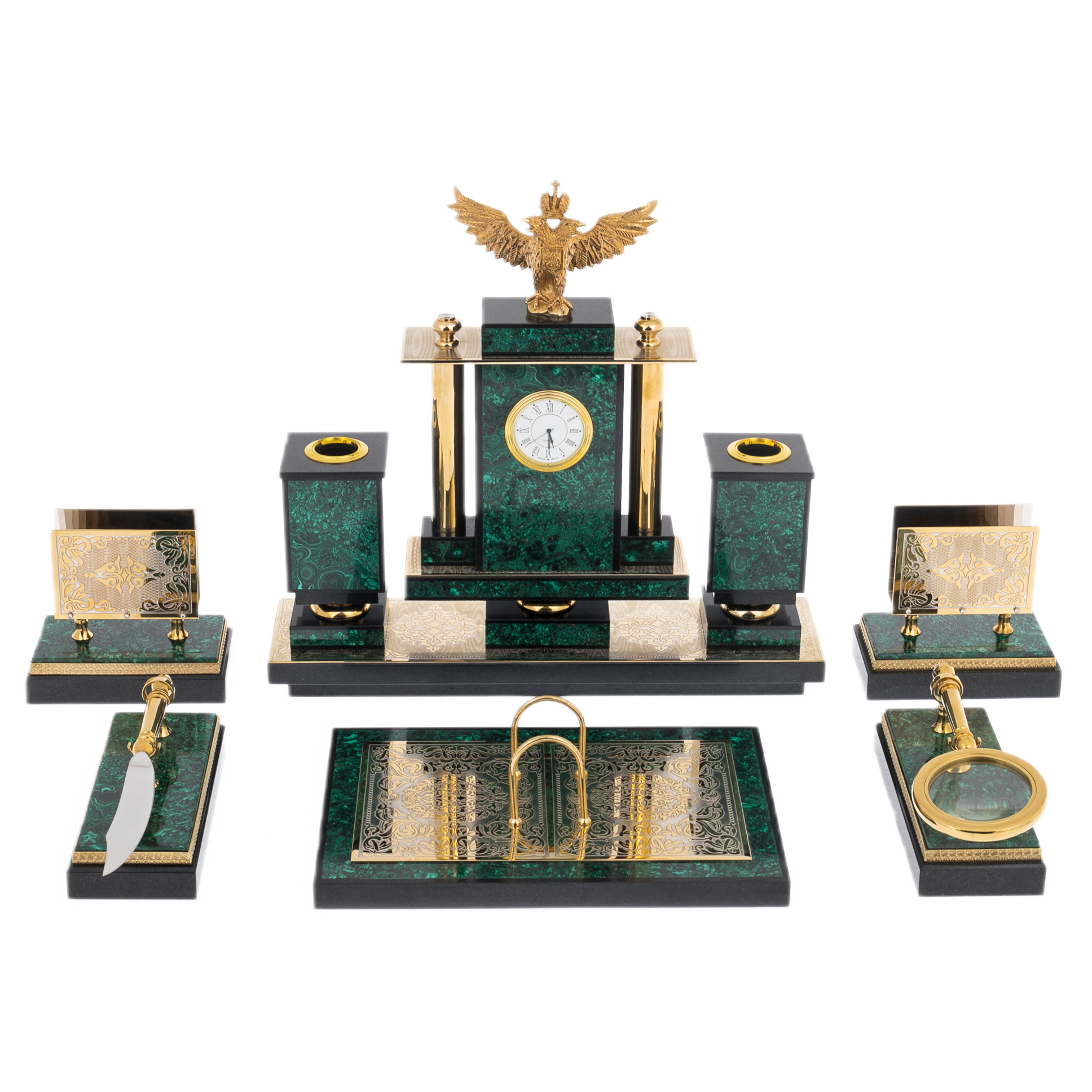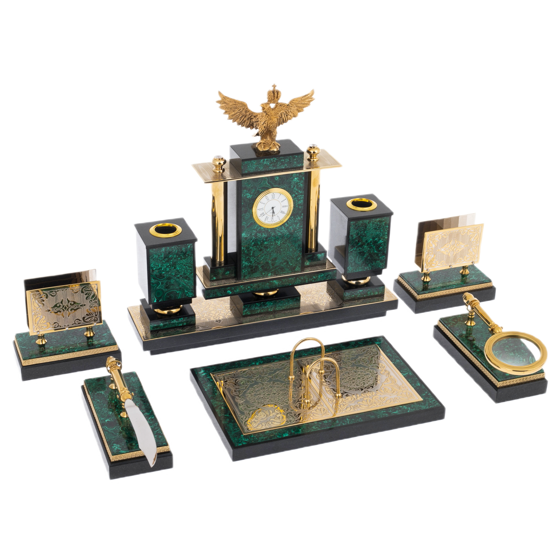 Письменный настольный набор из малахита "Орёл" Златоуст
