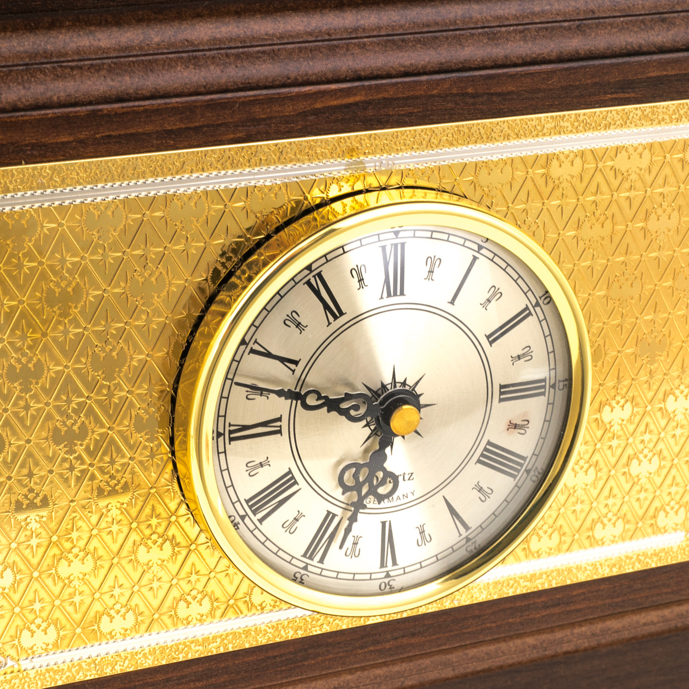 Поставляется изделие в коробе, обтянутом кожей. Возможно нанесение дарственной гравировки или тематической надписи на шильде.