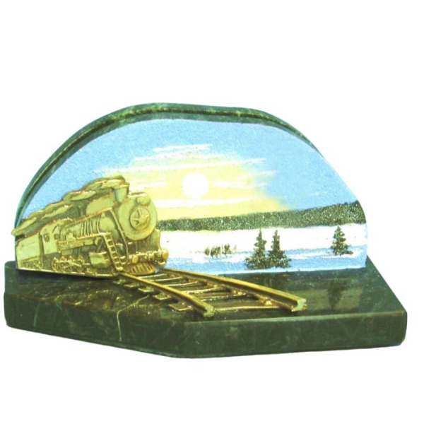 Визитница из бронзы и змеевика "Магистраль" – элегантный и функциональный аксессуар для вашего рабочего стола. Изготовленная из натурального змеевика и украшенная бронзой, она прочна и изысканна. На визитнице изображен поезд, символизирующий движение и прогресс. Эта визитница станет не только удобным местом для хранения визитных карточек, но и прекрасным подарком для коллег и друзей, подчеркивающим стремление к новым достижениям.