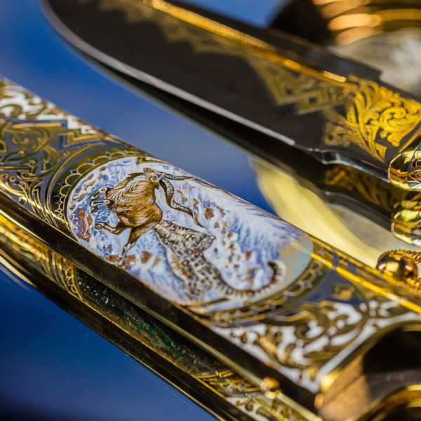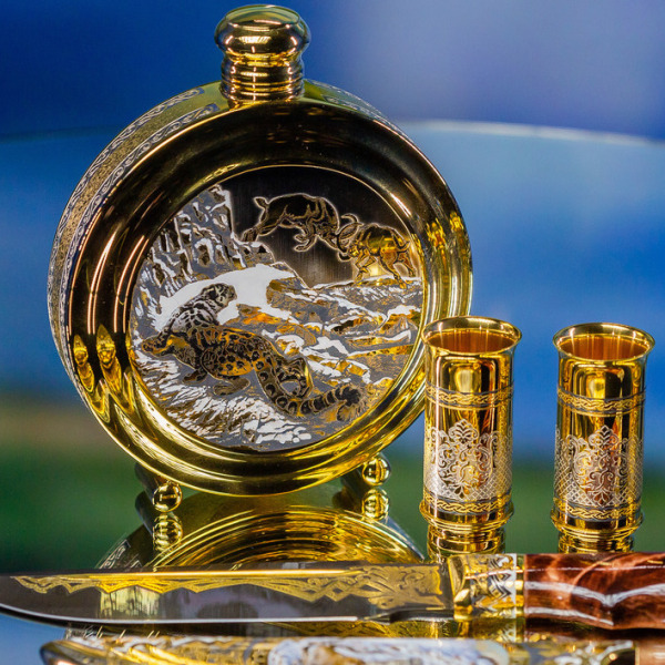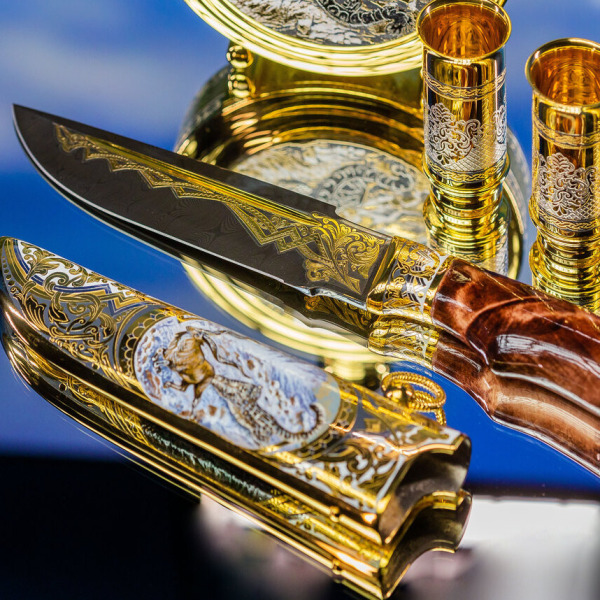 Секреты и тонкости этого искусства передаются из поколения в поколение, поэтому уникальные художественные изделия неповторимы. Охотничьи наборы можно украсить дарственной надписью с самыми лучшими пожеланиями виновнику торжества.