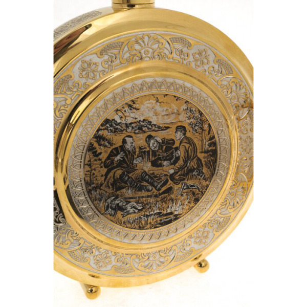 Набор охотничий "Петушок" на 2 персоны, ЗлатоустНабор охотничий "Петушок" на 2 персоны, ЗлатоустЭксклюзивные охотничьи наборы - нет лучше подарка для охотника! Изысканные аксессуары, декорированные в стиле Златоуста, можно брать на охоту, украсить ими кабинет или гостиную. Охотничьи принадлежности, покрытые серебром и золотом с живописными сценками из охотничьей жизни, пригодятся для приготовления еды у костра. В производстве аксессуаров для охоты и пикника использовались материалы самого высокого качества - латунь, никель, нержавеющая сталь, дерево и натуральная кожа. Охотничьи наборы можно украсить дарственной надписью с самыми лучшими пожеланиями виновнику торжества.