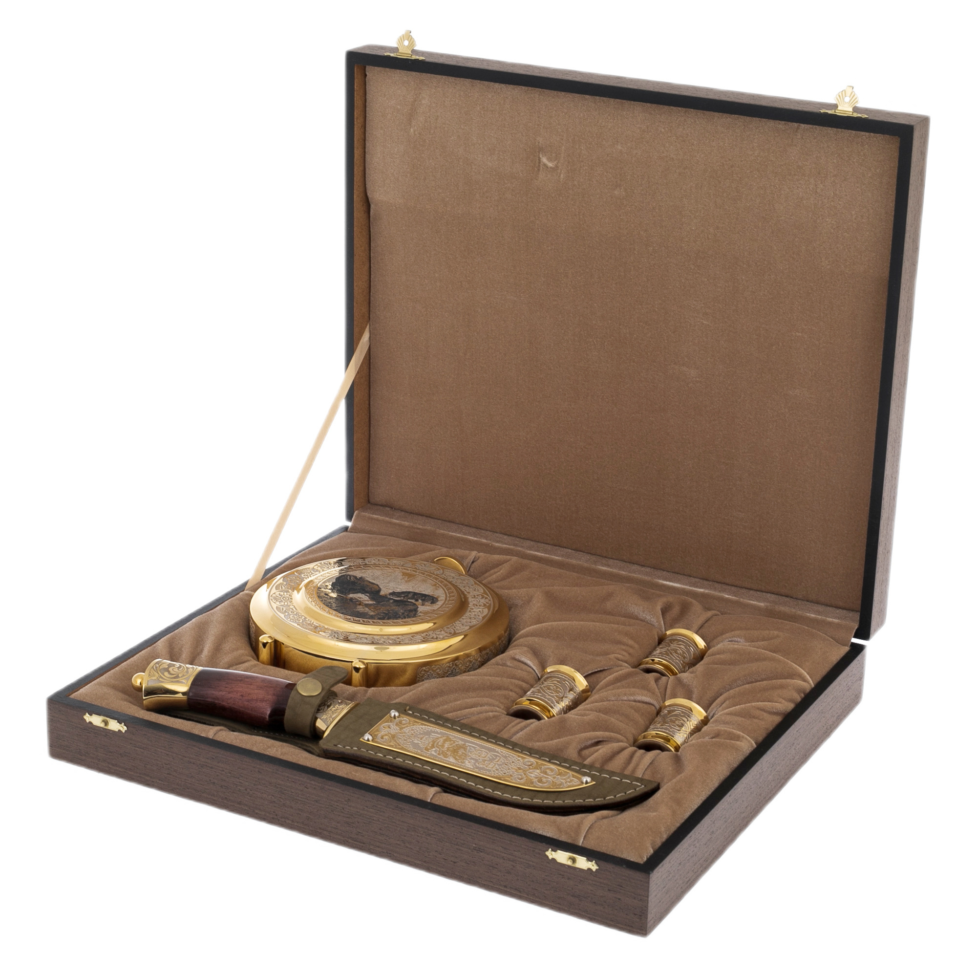 Набор охотничий большой "Охота на медведя" с ножом, на 3 персоны, Златоуст