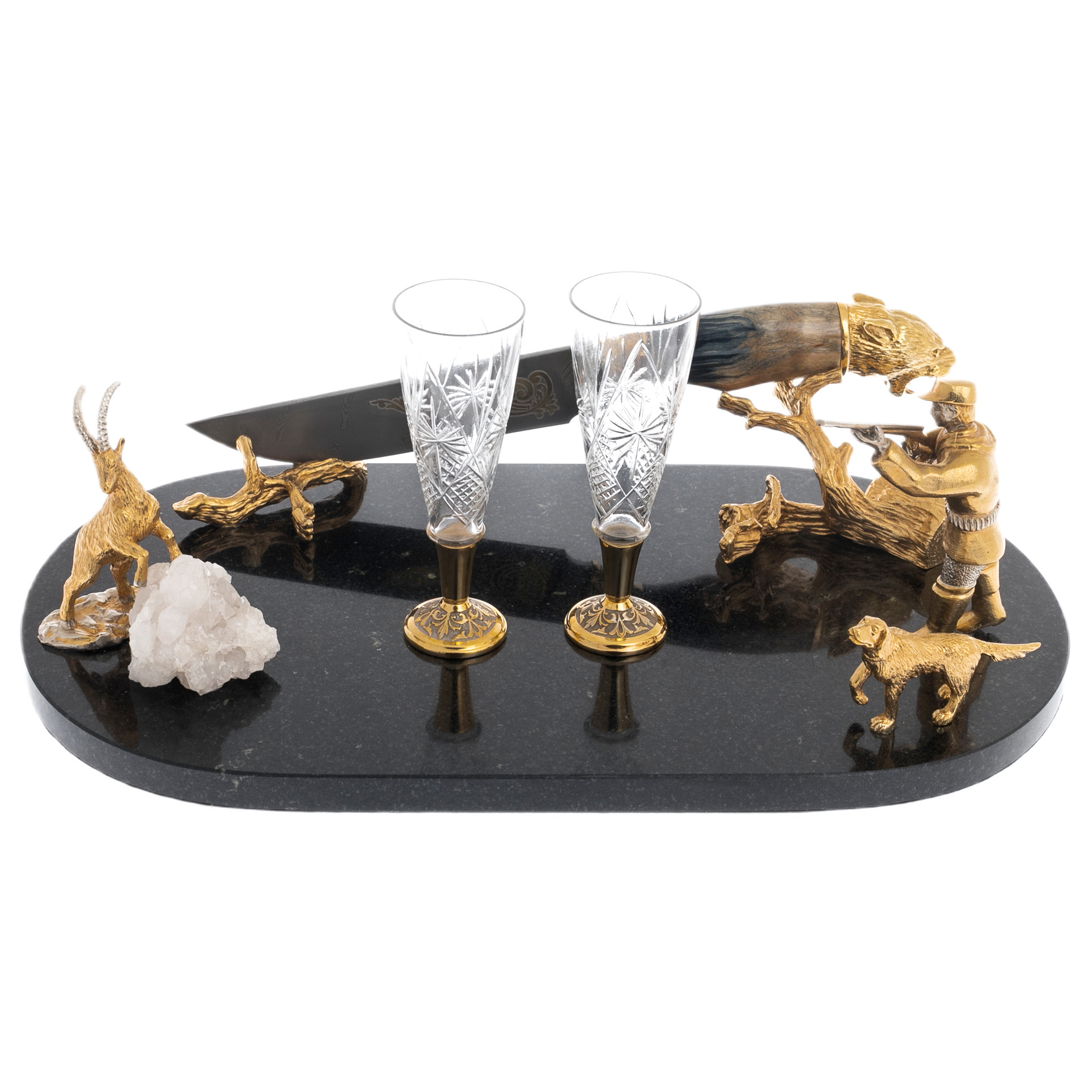 Набор охотничий на подставке "Охота на архара" на 2 персоны, Златоуст