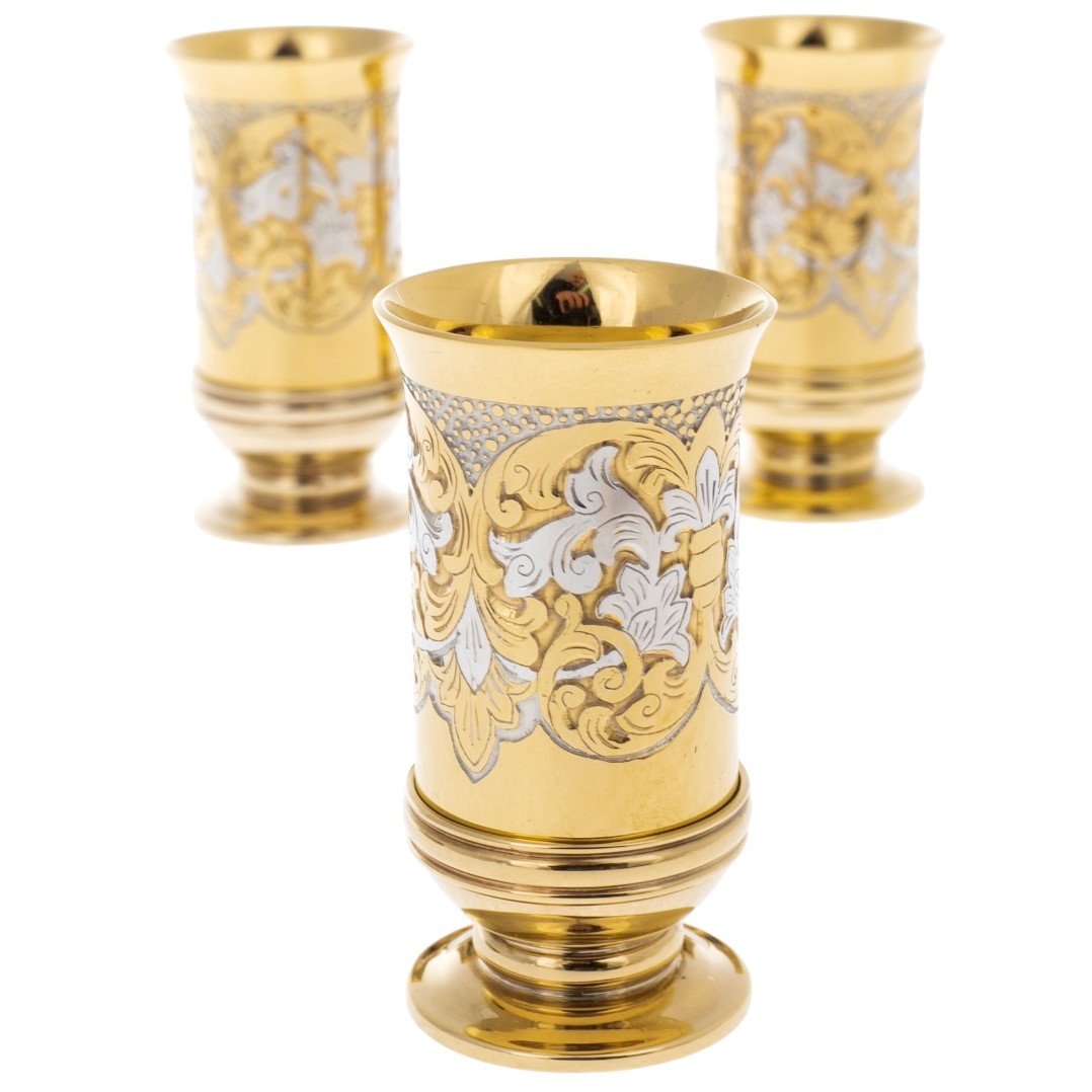 Эксклюзивные охотничьи наборы выполнены в технике Златоуста - национального художественного промысла. Ножи, стопки и принадлежности для охоты, покрытые платиной, золотом, серебром и никелем, украшены гравюрами Златоустовских мастеров. После того, как на полированную поверхность наносится изящный рисунок, изделие сушится в печи и подвергается травлению, после которого узор становится рельефным.