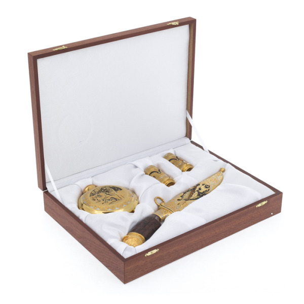 Секреты и тонкости этого искусства передаются из поколения в поколение, поэтому уникальные художественные изделия неповторимы. Охотничьи наборы можно украсить дарственной надписью с самыми лучшими пожеланиями виновнику торжества.