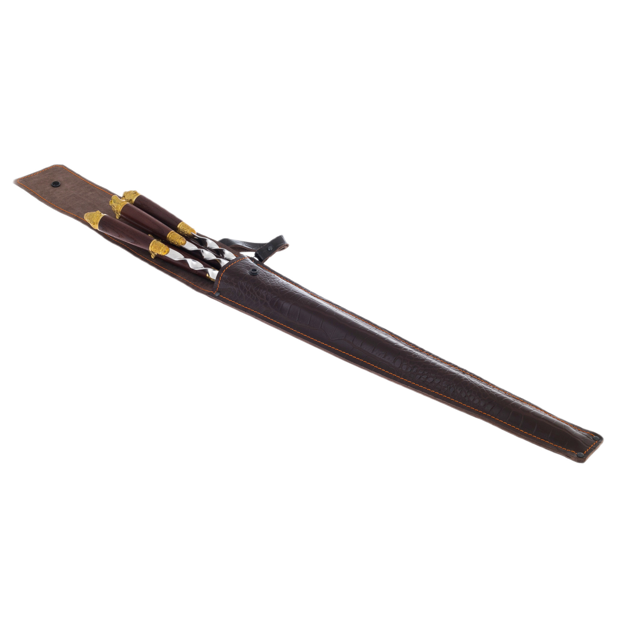 Колчан, выполненный с особой тщательностью, не только защищает шампуры, но и служит эстетическим дополнением к набору. Его дизайн подчеркивает вашу приверженность к высшему качеству и роскоши, делая этот комплект идеальным выбором для тех, кто ценит силу и элегантность в каждом предмете. Этот набор шампуров станет не просто частью вашего стола, но и символом вашего лидерства, демонстрируя вашу способность контролировать и управлять любыми ситуациями.