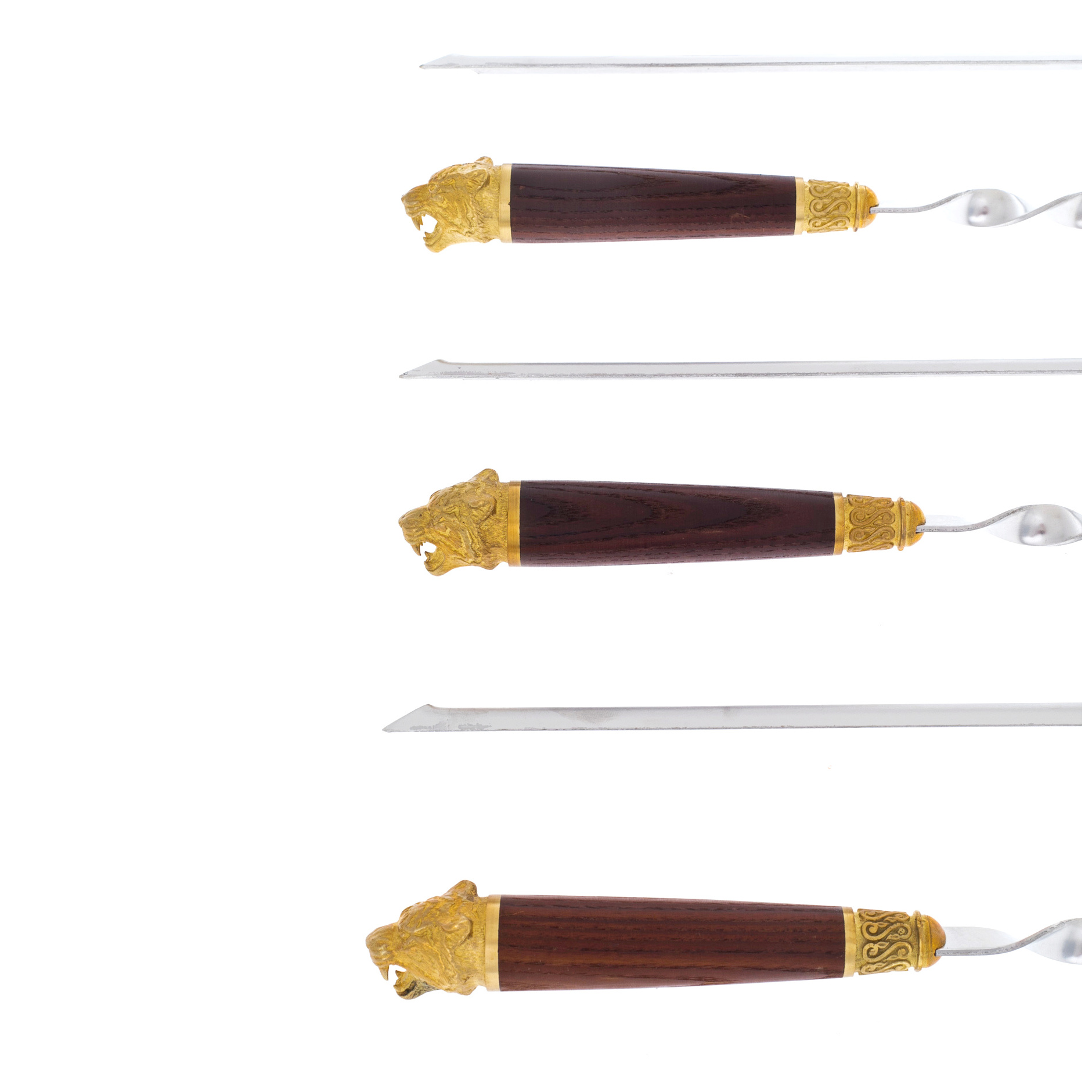 Набор шампуров в колчане "Голова тигра" — это воплощение силы и безупречного вкуса, предназначенное для тех, кто привык окружать себя символами власти и контроля. Каждый элемент этого комплекта, от массивных рукояток, увенчанных головой тигра, до изысканного дизайна колчана, выполнен с безукоризненным мастерством. Металлические детали, украшенные тонкой гравировкой, передают мощь и грацию этого величественного зверя, олицетворяя природную силу и решимость, которые так важны в жизни лидера.