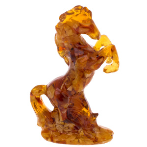 Сувенир из янтаря "Конь" — скульптура, несущая образ силы, движения и благородства, заключённый в природный камень, выросший из света. Фигура коня поднята на дыбы, поймана в миг напряжённой красоты, когда энергия ещё не выплеснулась вперёд, но уже ощутима в линии шеи, в изгибе корпуса, в выразительном жесте поднятых передних ног. Такой предмет воспринимается как личный талисман и одновременно как арт-объект, добавляющий интерьеру характер — уверенный, волевой, без суеты.