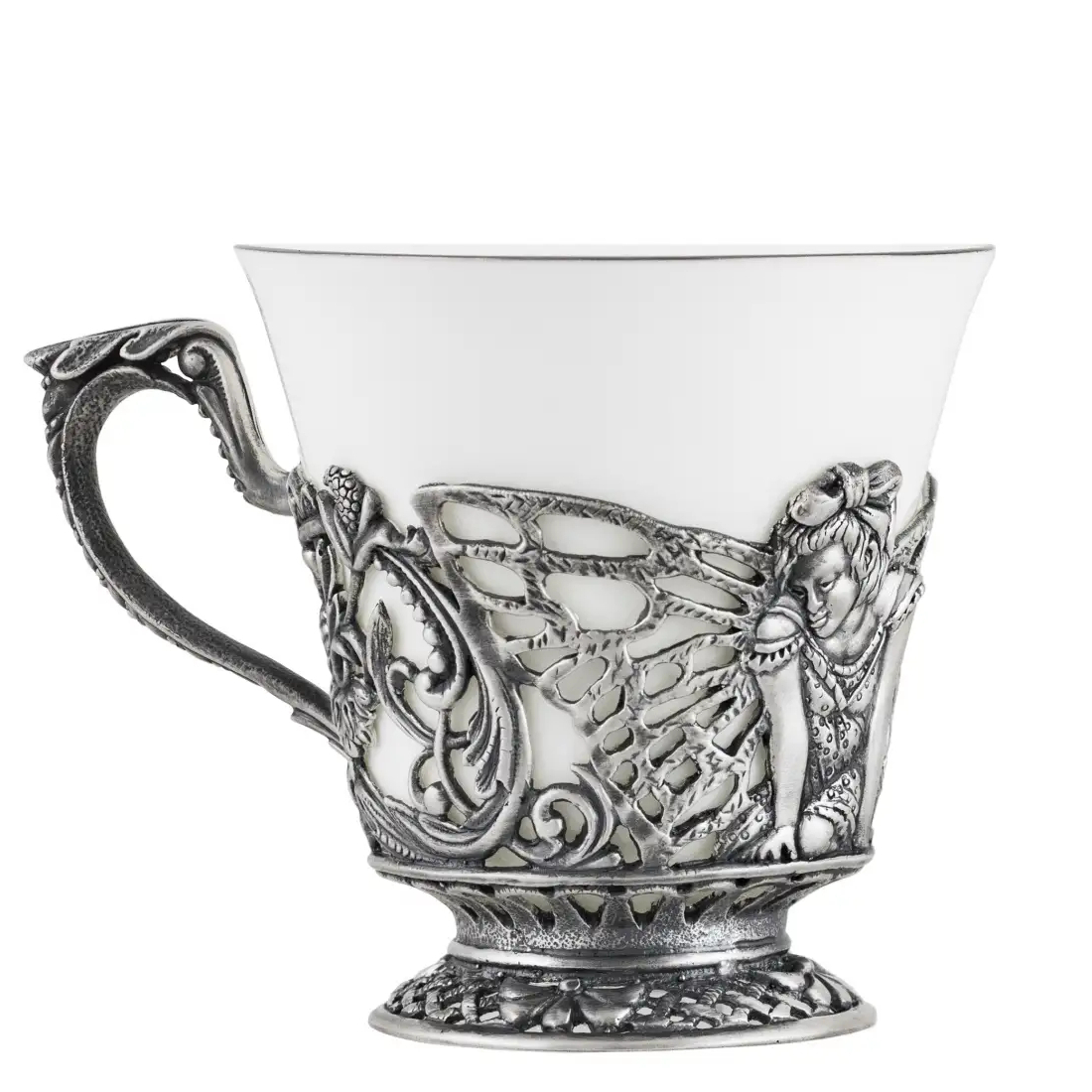 Чашка чайная "Фея" посеребренная, с чернением, на 1 персону