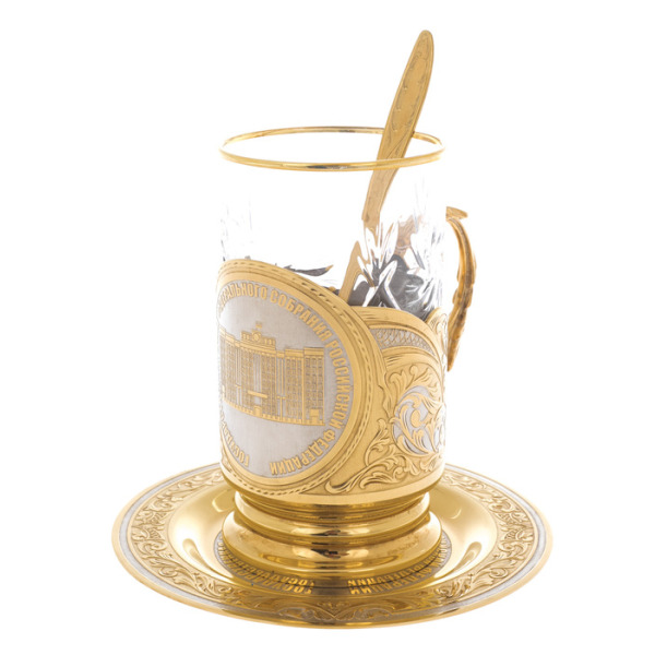 Чайный набор с эмблемой ФСБ, ЗлатоустЧайный набор с эмблемой ФСБ, ЗлатоустКоллекции изящной посуды от мастеров из Златоуста эффектно декорированы росписью, травлением и золочением. После того, как на полированную поверхность наносится изящный рисунок, изделие сушится в печи и подвергается обработке, после которого рисунок становится рельефным.