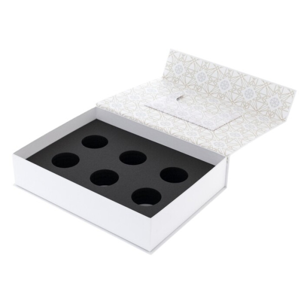 Футляр содержит шесть отдельных отсеков, каждый из которых предназначен для хранения одного елочного шара. Футляр защищает шары от повреждений и пыли, обеспечивая их длительное хранение.