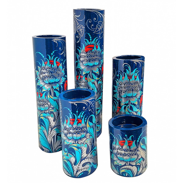 Изготовлен в полном соответствии с традиционной хохломской технологией золочения. Выточен из цельного дерева вручную. Имеет авторскую роспись в технике фонового письма. Роспись «Заря». Лаковое покрытие делает изделие влагозащищенным и износоустойчивым. Все применяемые при производстве материалы натуральны и экологичны. Подсвечник является универсальным подарком, который обеспечит все необходимое для создания романтической обстановки в доме, а также служит элементом декора помещения. На каждом изделии имеется подпись автора росписи.