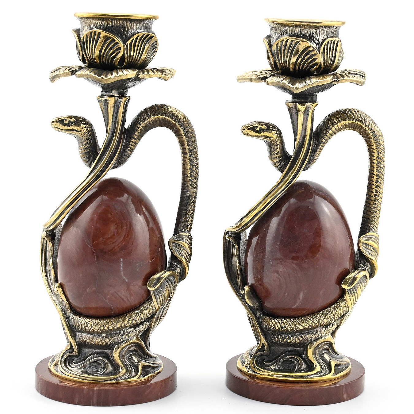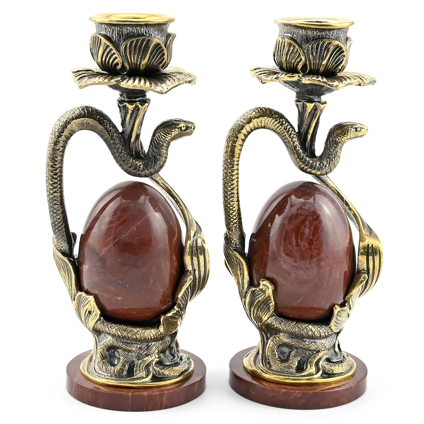 Пара подсвечников из бронзы "Полоз" с яйцом из лемезита