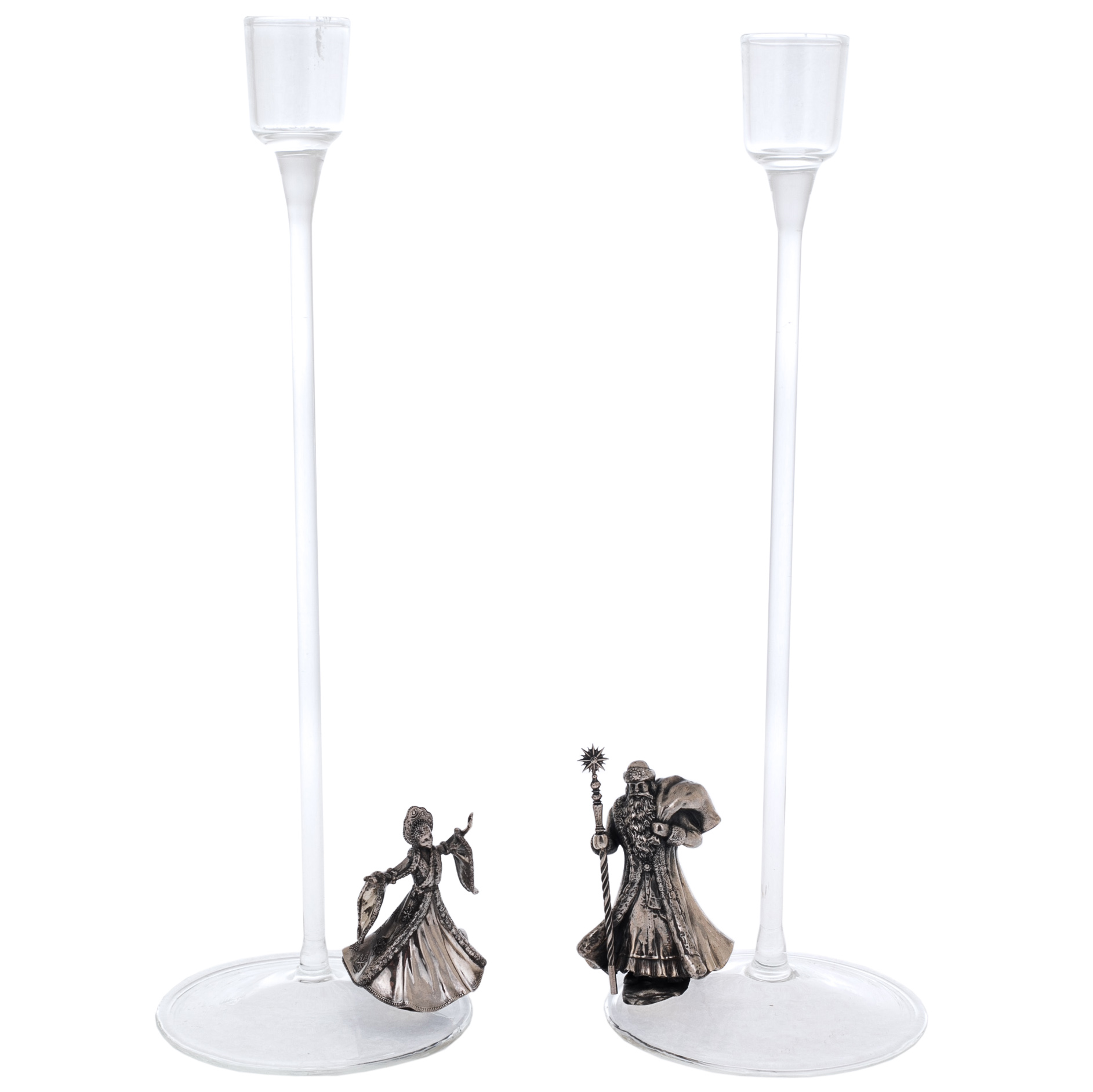Подарочный набор подсвечников "Дед Мороз и Снегурочка"