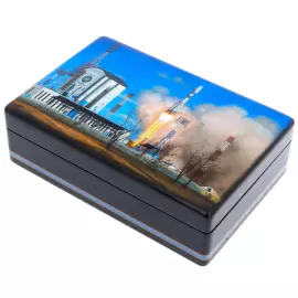 Федоскино Шкатулка "Космодром Восточный" Рогатов, Федоскино Шкатулка "Космодром Восточный" Рогатов, Федоскино Подарочная шкатулка «Космодром Восточный» от мастера Рогатова — это уникальное произведение декоративно-прикладного искусства, сочетающее в себе тематический сюжет и высочайшее качество исполнения. Яркое изображение запуска ракеты на космодроме Восточный выполнено с точностью и живостью, что делает эту шкатулку не только функциональным предметом для хранения украшений, но и настоящей коллекционной ценностью для поклонников космической тематики. Федоскинская техника росписи, применённая в создании этой шкатулки, уникальна и известна своим многовековым наследием. Она отличается использованием тончайших кистей и многослойной лаковой отделкой, благодаря чему достигается особая глубина и насыщенность цвета, а изображение приобретает живость и объем. Каждый этап работы — от подготовки деревянной основы до нанесения последних слоёв лака — выполняется вручную, что обеспечивает исключительное качество и долговечность изделия. Федоскинская лаковая миниатюра славится своей изысканностью, тонкой деталировкой и стойкостью к времени, что делает каждую шкатулку настоящим шедевром народного искусства. Внутренняя отделка выполнена в классическом красном цвете с глянцевой поверхностью, что подчёркивает изысканность и статус изделия. Эта шкатулка станет прекрасным подарком для ценителей искусства и поклонников космической тематики, сочетая в себе функциональность и эстетическое наслаждение, а также символизируя стремление к новым вершинам и открытиям. Благодаря мастерству художника и традициям федоскинской школы, изделие будет радовать своего владельца долгие годы.
