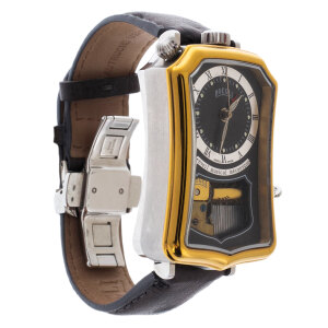 Boegli Наручные часы музыкальные "Grand Festival" Наручные часы музыкальные "Grand Festival" Карманные часы Boegli с встроенным музыкальным механизмом воспроизводят сложнейшие классические мелодии, включая Моцарта и Вивальди, поражая кристальной чистотой и мелодичностью чарующих звуков. Швейцарские мастера, начиная от Луиса Шваба, принадлежащие к семейной династии, посвятили свою жизнь часовому делу и создают часы утонченного дизайна с 1904 года. Гордость коллекции Grand Orchestre - наручные часы Grand Festival с будильником-мелодией и модель Grand Amour с романтичным маршем Мендельсона. Особенностью линейки Union Jack, посвященной Королеве Елизавете II, является гимн Великобритании и британский флаг на циферблате. Корпус выполнен в форме музыкальной деки, а на задней крышке корпуса вмонтировано окошко, через которое можно наблюдать за тем, как работает музыкальный механизм. Все детали часов Boegli изготавливаются вручную, сборка представляет собой трудоемкий процесс, а результат соответствует высочайшим эталонам часового искусства. Часы могут быть изготовлены по индивидуальному заказу, с выбранной клиентом мелодией и уникальным декором. Совершенство инженерных изысканий в сочетании с изысканной эстетикой дарят истинное наслаждение всем ценителям коллекционных часовых раритетов.