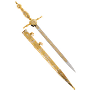 Кортик "Адмиральский" Кортик "Адмиральский" Подарочный кортик "Адмиральский" - выдающийся образец оружейного мастерства. Изделие выполнено в технике Златоустовской гравюры на металле. Латунь и сталь эи-107 делают это коллекционное оружие не только красивым, но и очень прочным, а содержание никеля и золота 999 пробы - дорогим коллекционным подарком.  Вы можете украсить его оригинальным поздравлением или заказать рисунок по своему эскизу.