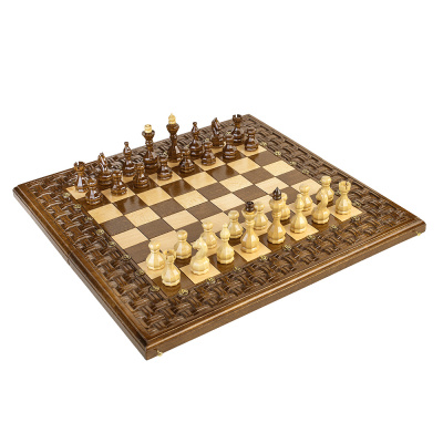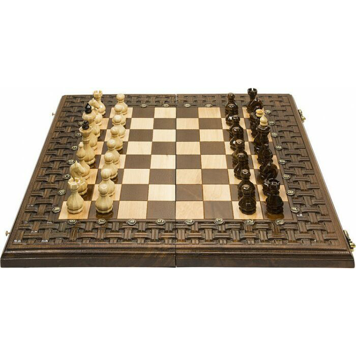 Резные шахматы и нарды из ценных пород дерева "Переплетение"