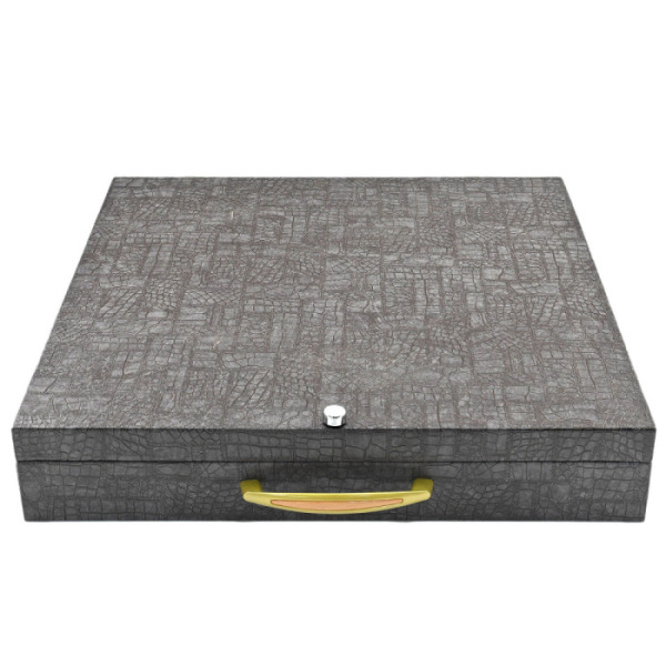 Ларец выполнен в виде шкатулки без ручки на устойчивых ножках. Части доски скреплены между собой износостойкой медной фурнитурой. Внутри нее располагается вставленный мягкий лоток с выемками под каждую фигурку. Это обеспечивает защиту для них даже в процессе тряски и транспортировки. На верхней крышке ларца нанесено игровое поле для шахмат, поэтому его также можно использовать непосредственно для самой игры.