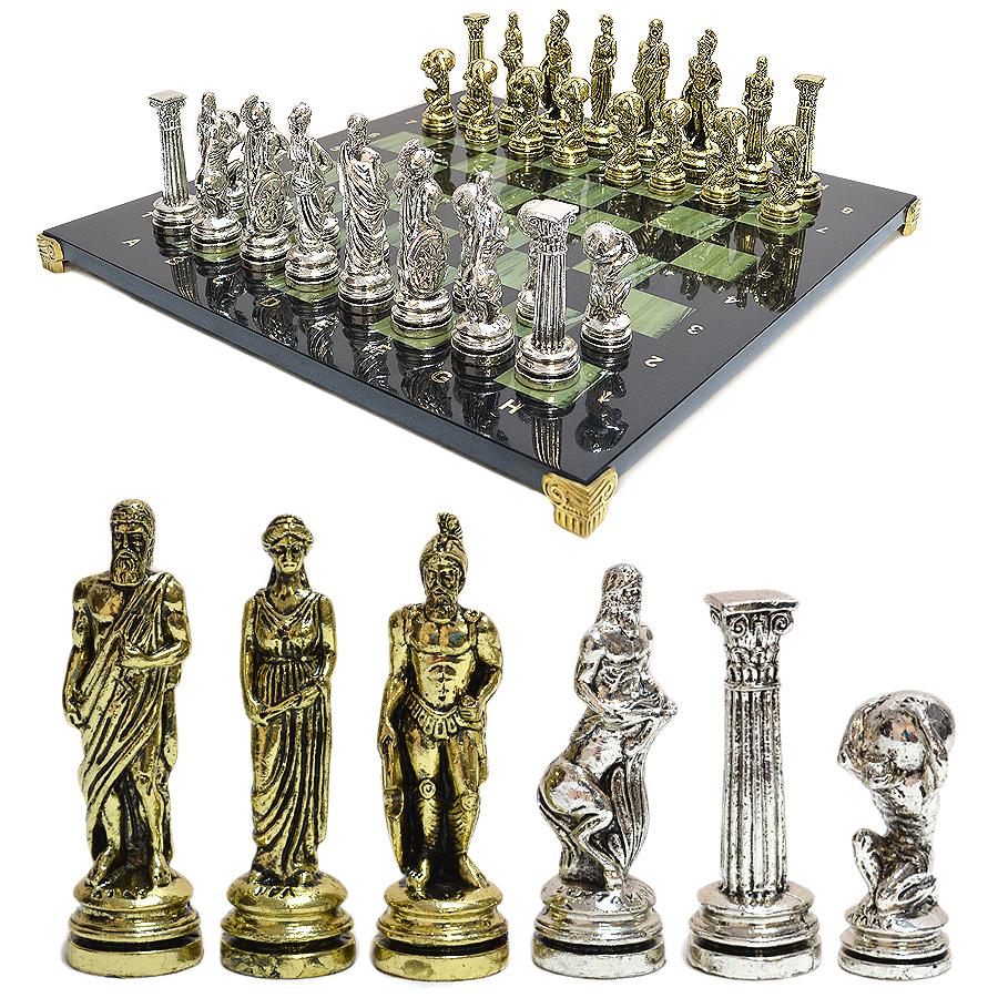 Подарочные шахматы из долерита и офиокальцита "Атлас"