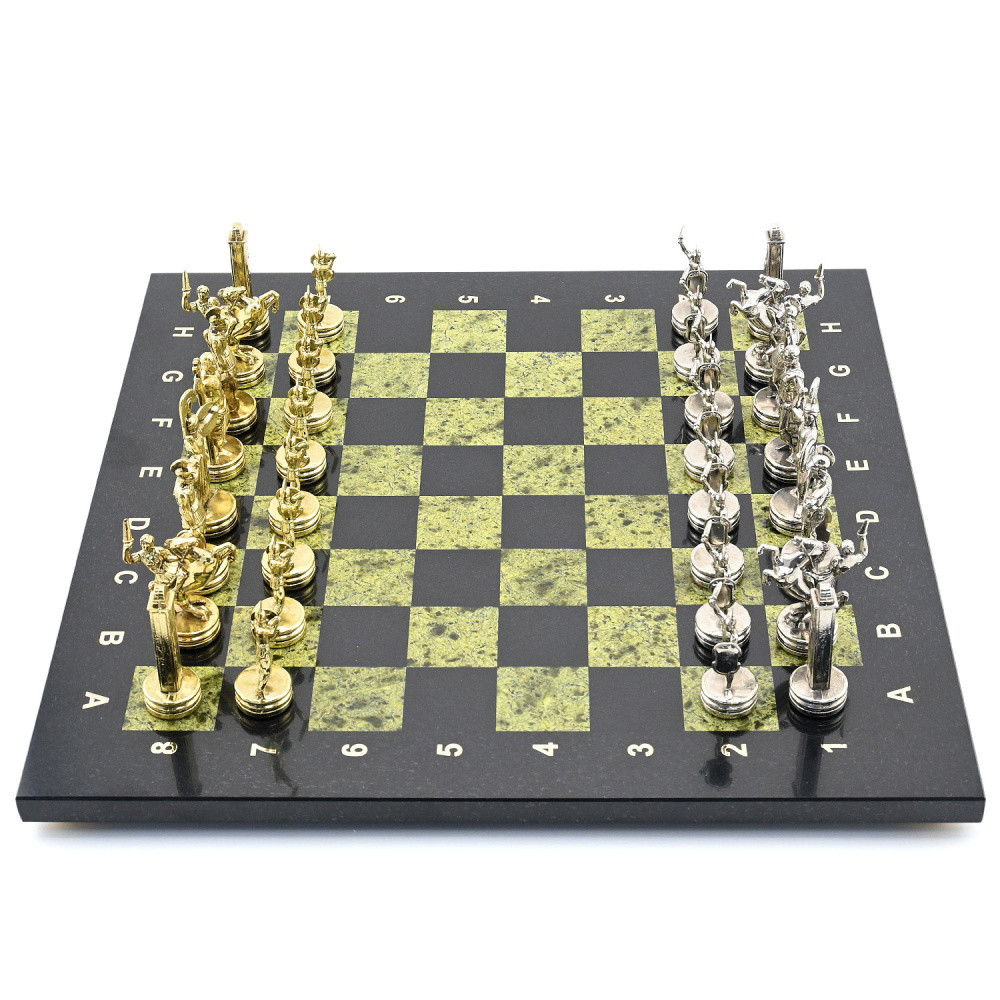Подарочные шахматы из долерита и змеевика "Битва Титанов"