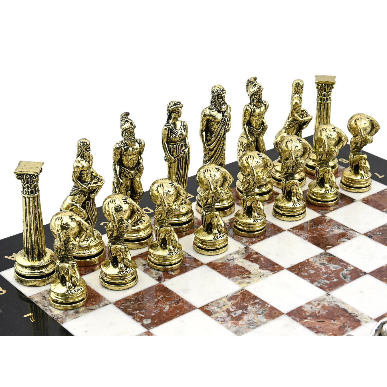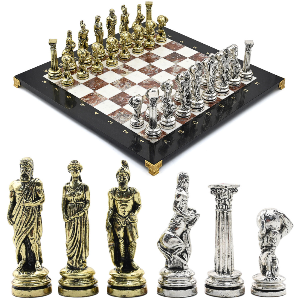 Подарочные шахматы из долерита, мрамора и креноида "Атлас"