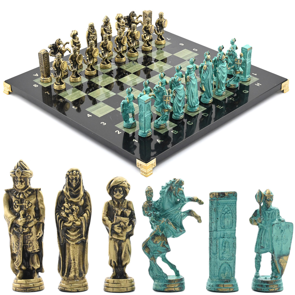 Подарочные шахматы из долерита, офиокальцит и мрамора "Эль Сид"