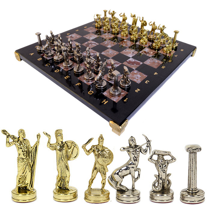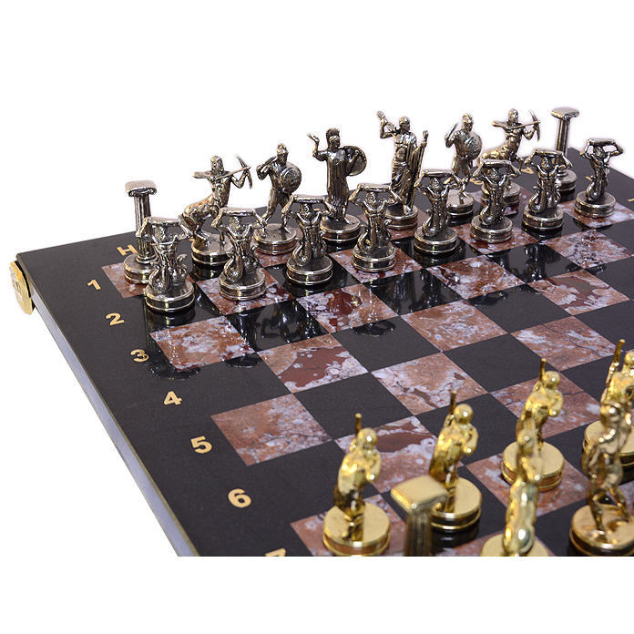 Подарочные шахматы из креноида и змеевика "Подвиги Геракла"