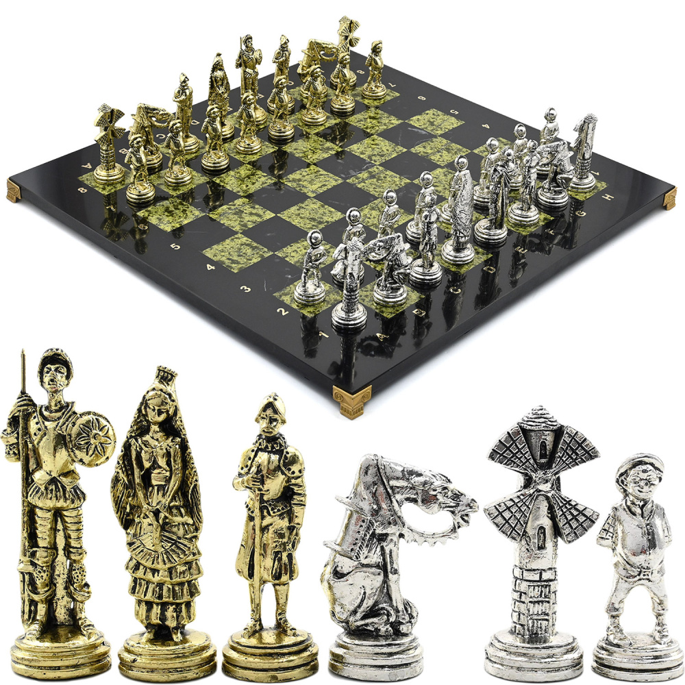Подарочные шахматы из змеевика и долерита "Дон Кихот"