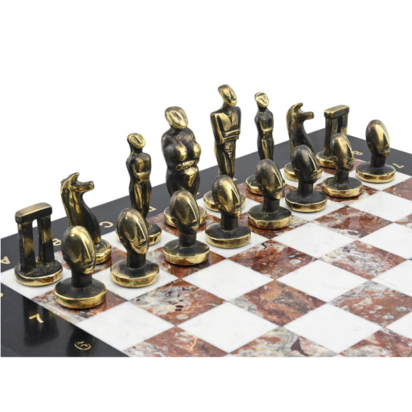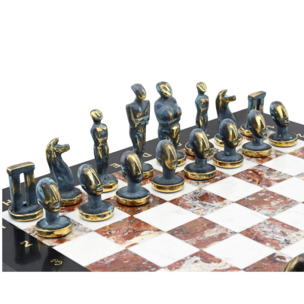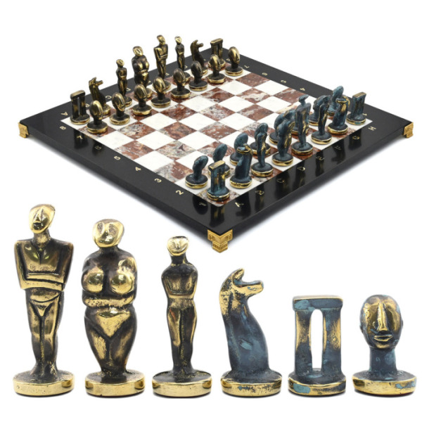 Подарочные шахматы из змеевика, креноида и мрамора "Кикладский период"