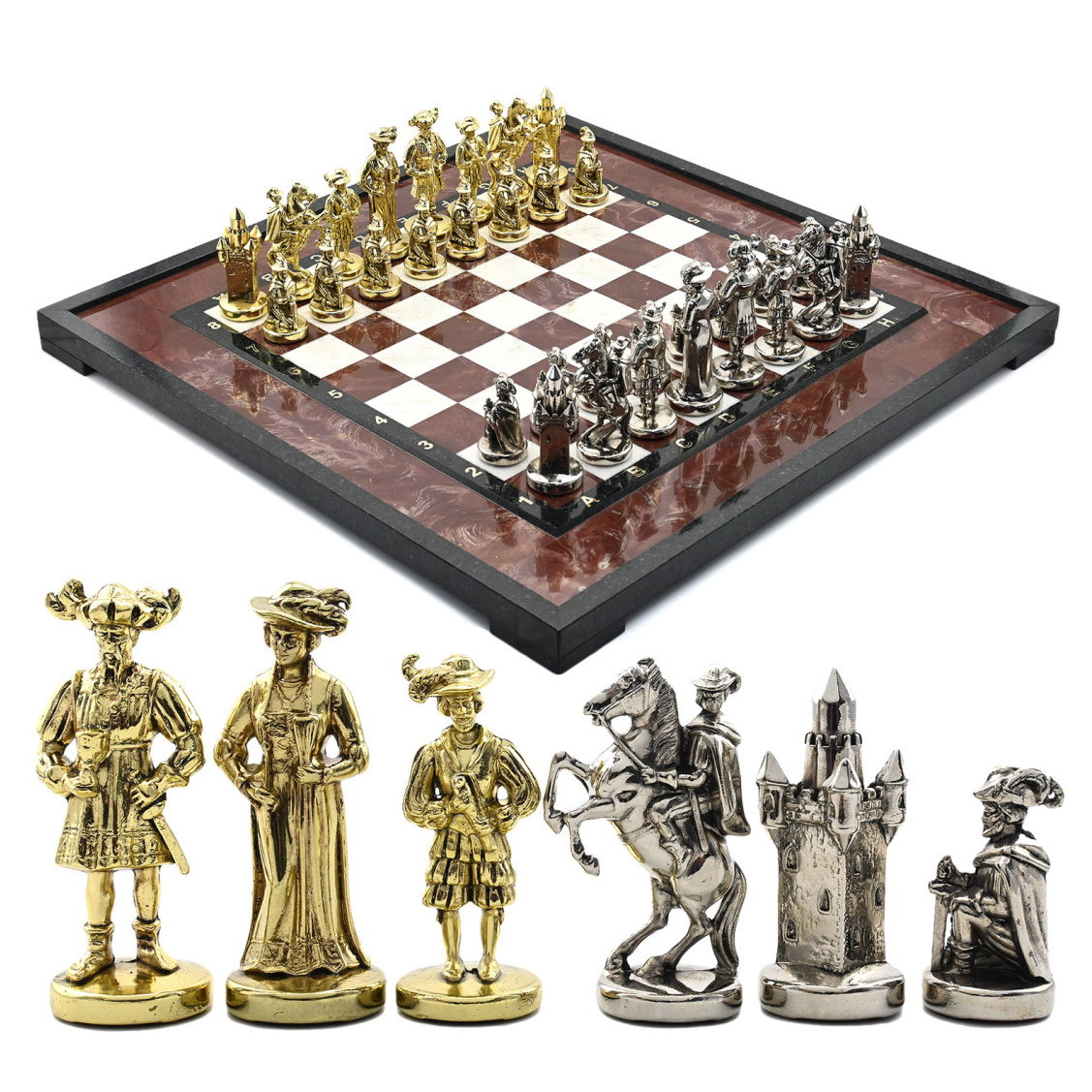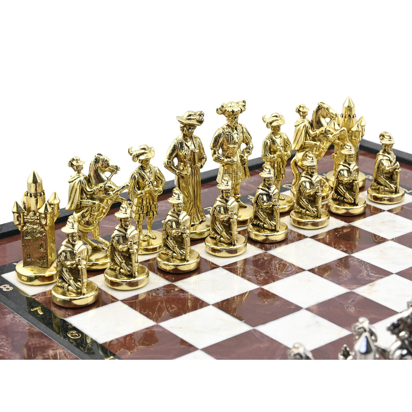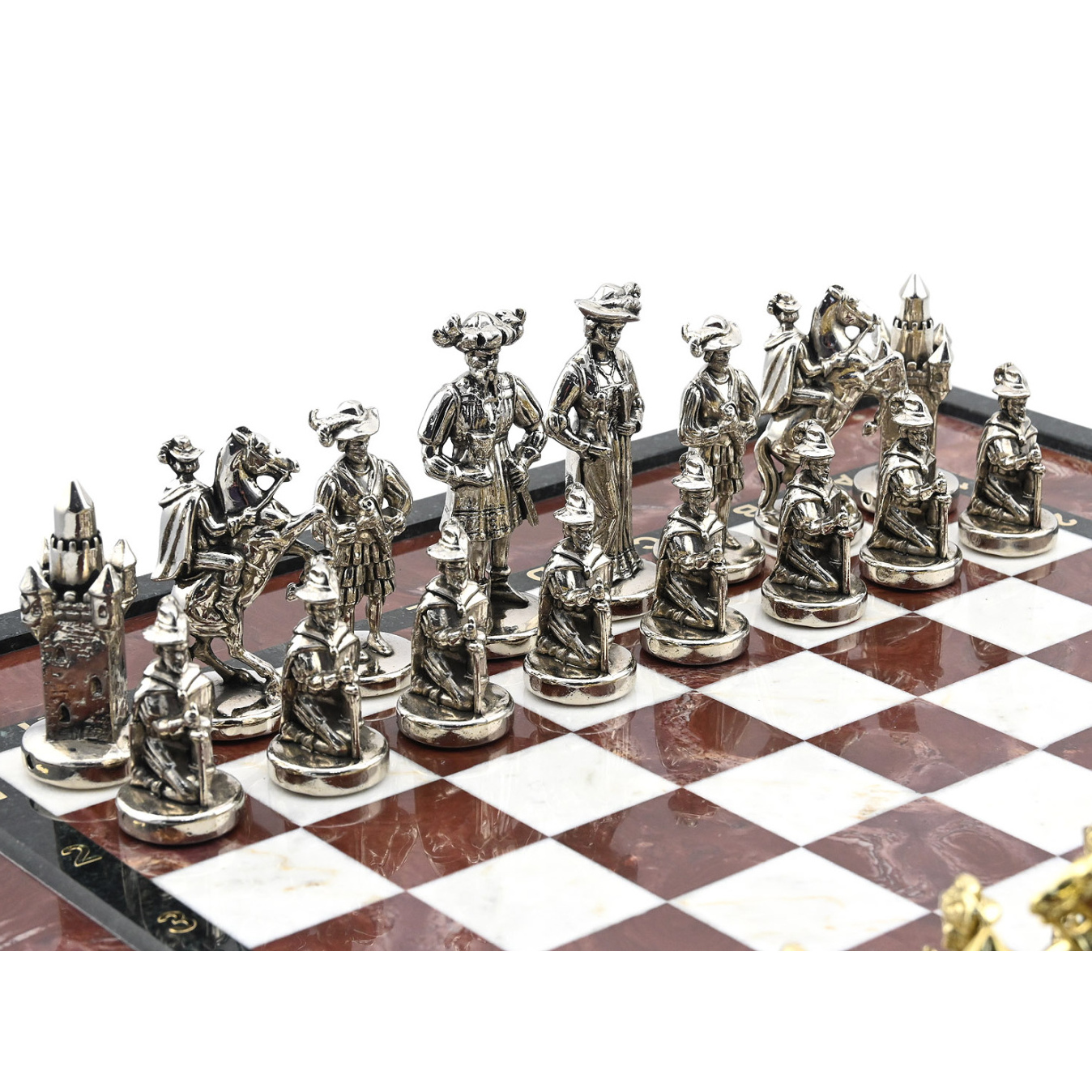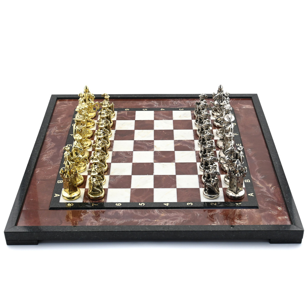 Подарочные шахматы из змеевика, лемезита и мрамора "Рыцари средневековья"