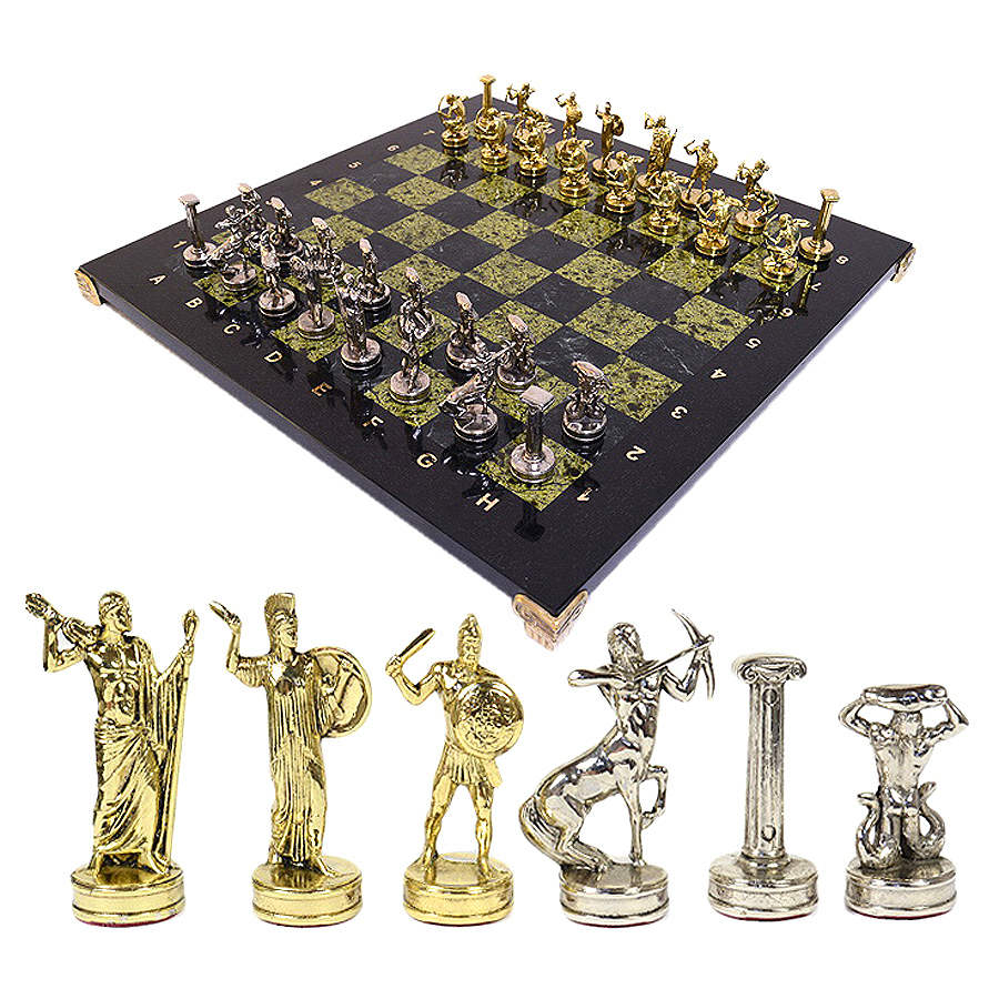 Подарочные шахматы из змеевика "Подвиги Геракла"