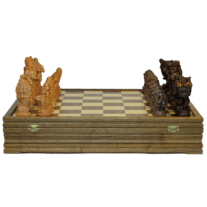 Шахматы деревянные резные "Сказка" на дубовой доске