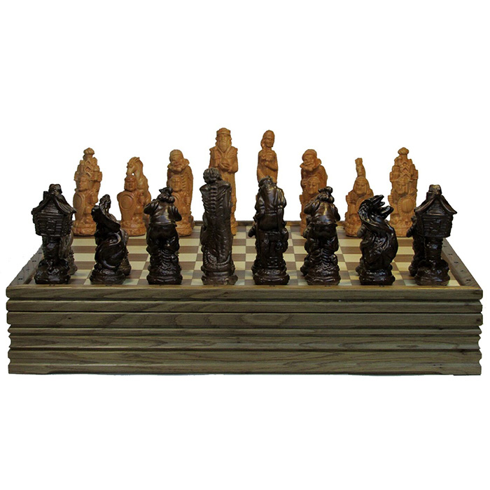 Набор адресован не просто поклонникам шахмат, но знатокам русской мифопоэтики и коллекционерам предметов с художественным смыслом. Это игра, перешедшая в плоскость символического повествования, где стратегия соединяется с историей. Комплект доставляется в защитной картонной коробке, но сам по себе уже является подарком музейного уровня — изысканным, многослойным, рассчитанным на тех, кто привык мыслить глубоко и выбирать лучшее.