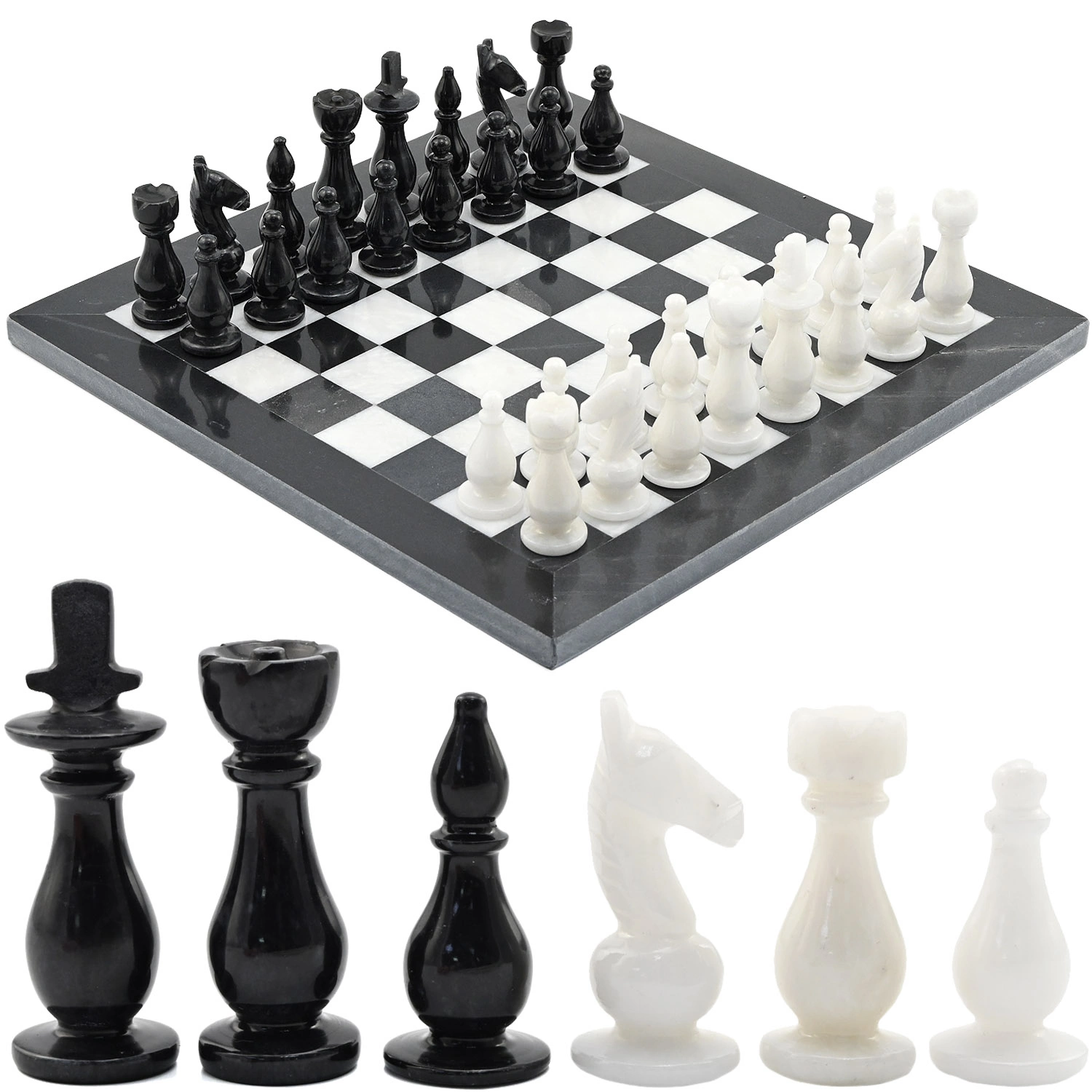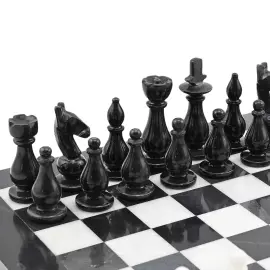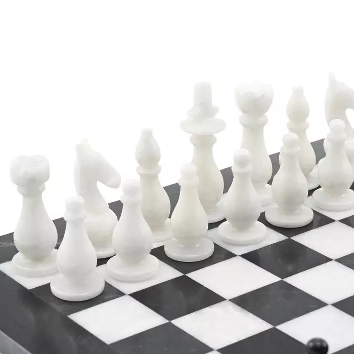 Шахматы изготовлены из натурального камня, поэтому рисунок каждого изделия уникален и может отличаться от представленного на фотографии. На поверхности камня допустимо присутствие природных прожилок и раковин.
