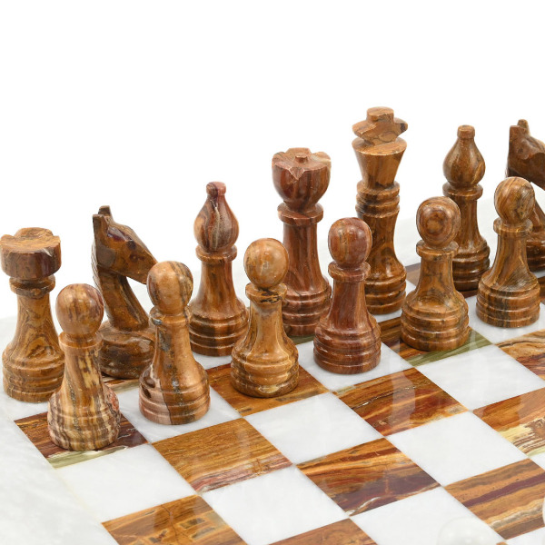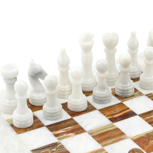 Шахматы из белого мрамора и коричневого оникса "Премиум"