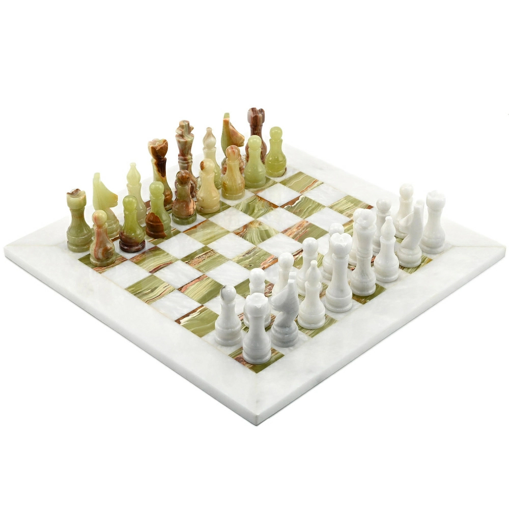 Шахматы из белого мрамора и зеленого оникса "Магия камня"
