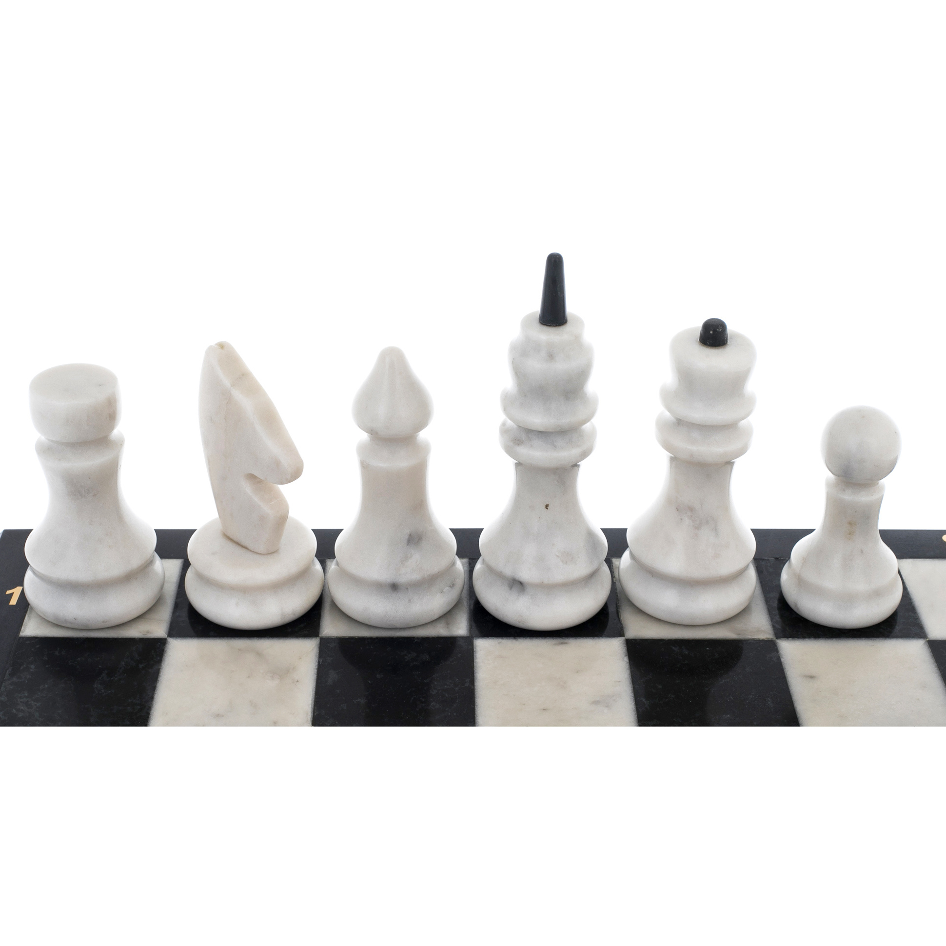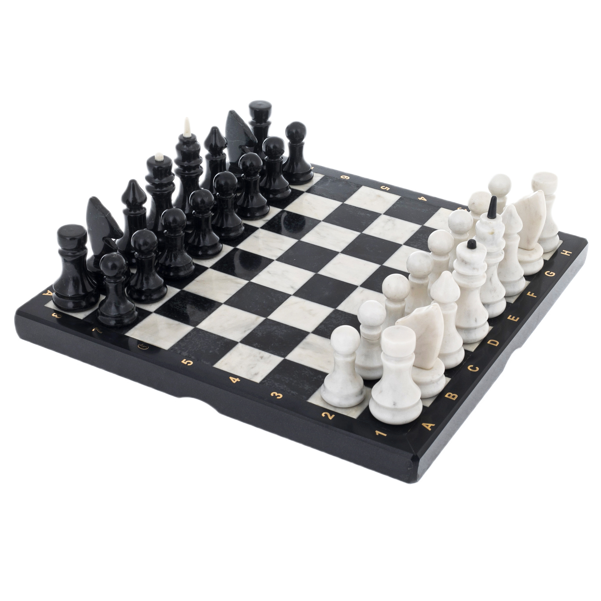 Великолепный набор шахмат из черного и белого мрамора станет настоящим украшением любого интерьера. Этот уникальный предмет подчеркивает не только безупречный вкус своего обладателя, но и его стремление к гармонии и власти, отраженной в игре стратегий и тактик. Белые и черные фигуры, выточенные с абсолютной точностью, выполнены из натурального мрамора — камня, символизирующего незыблемость и мощь, что делает каждый ход соприкосновением с вечностью.