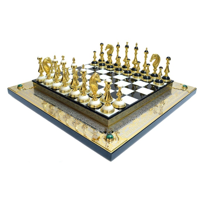 Шахматы из долерита и мрамора "Классические" с гравировкой