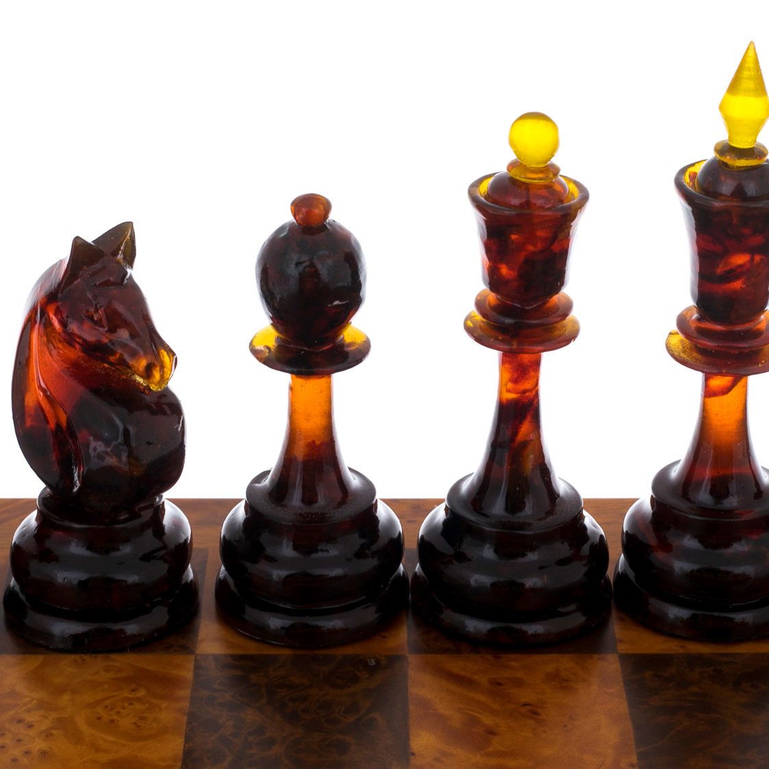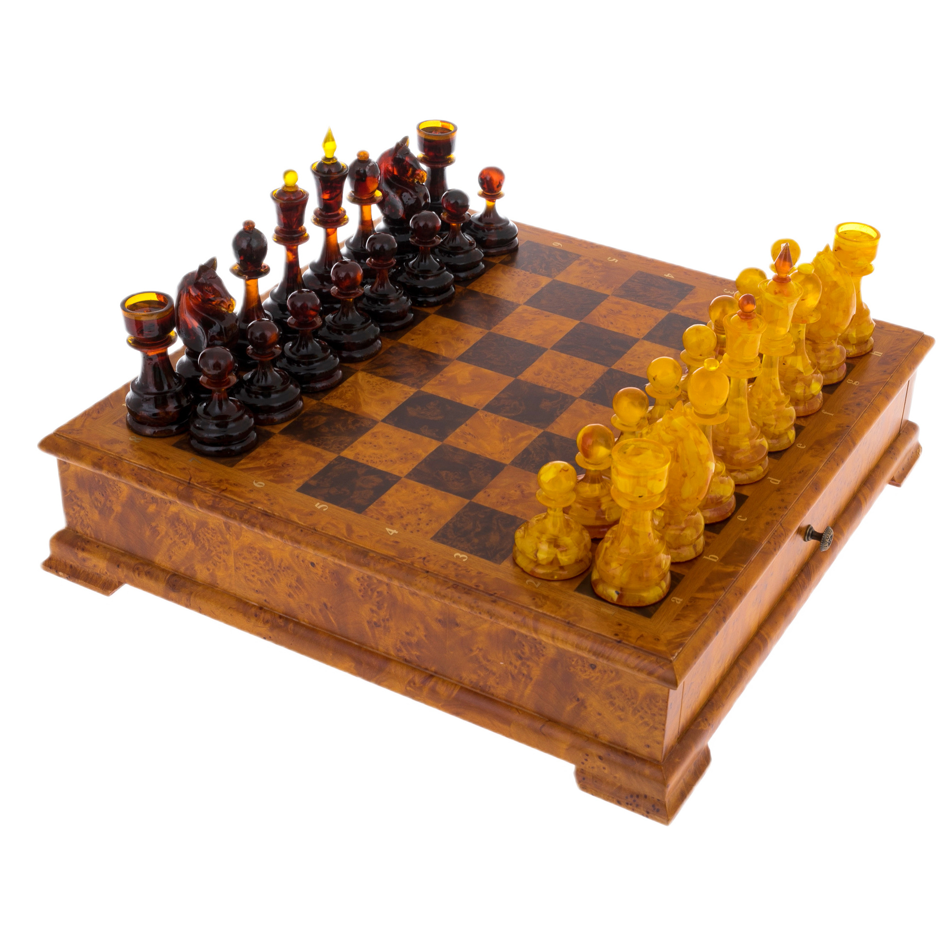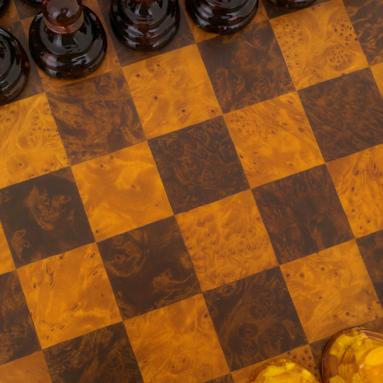 Шахматы из капа с янтарными фигурами