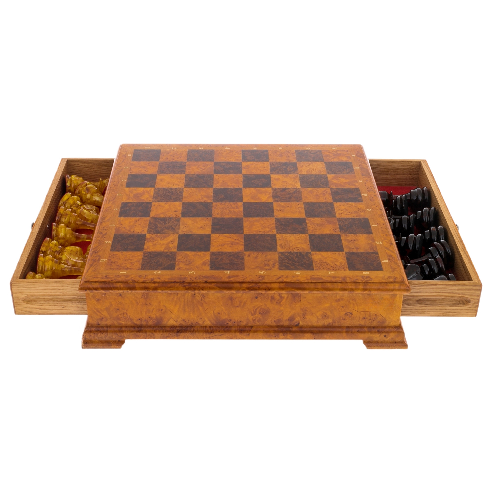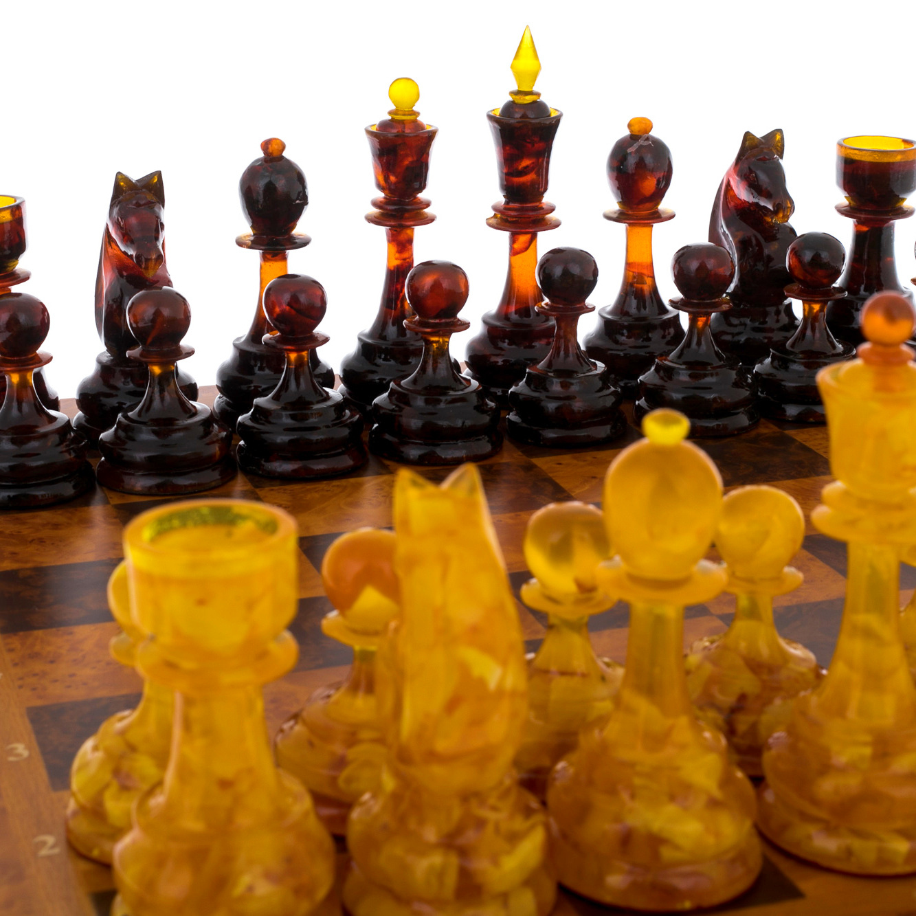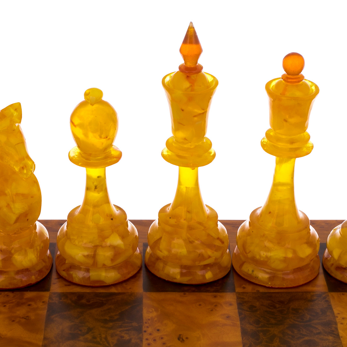 Шахматы из капа с янтарными фигурами