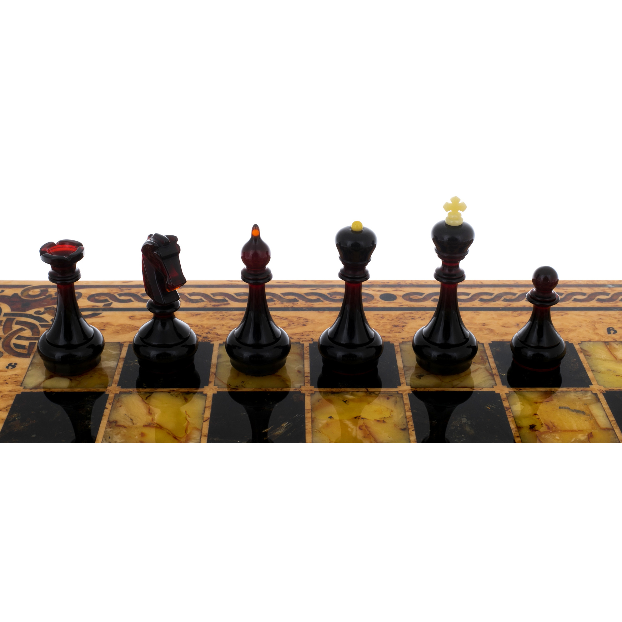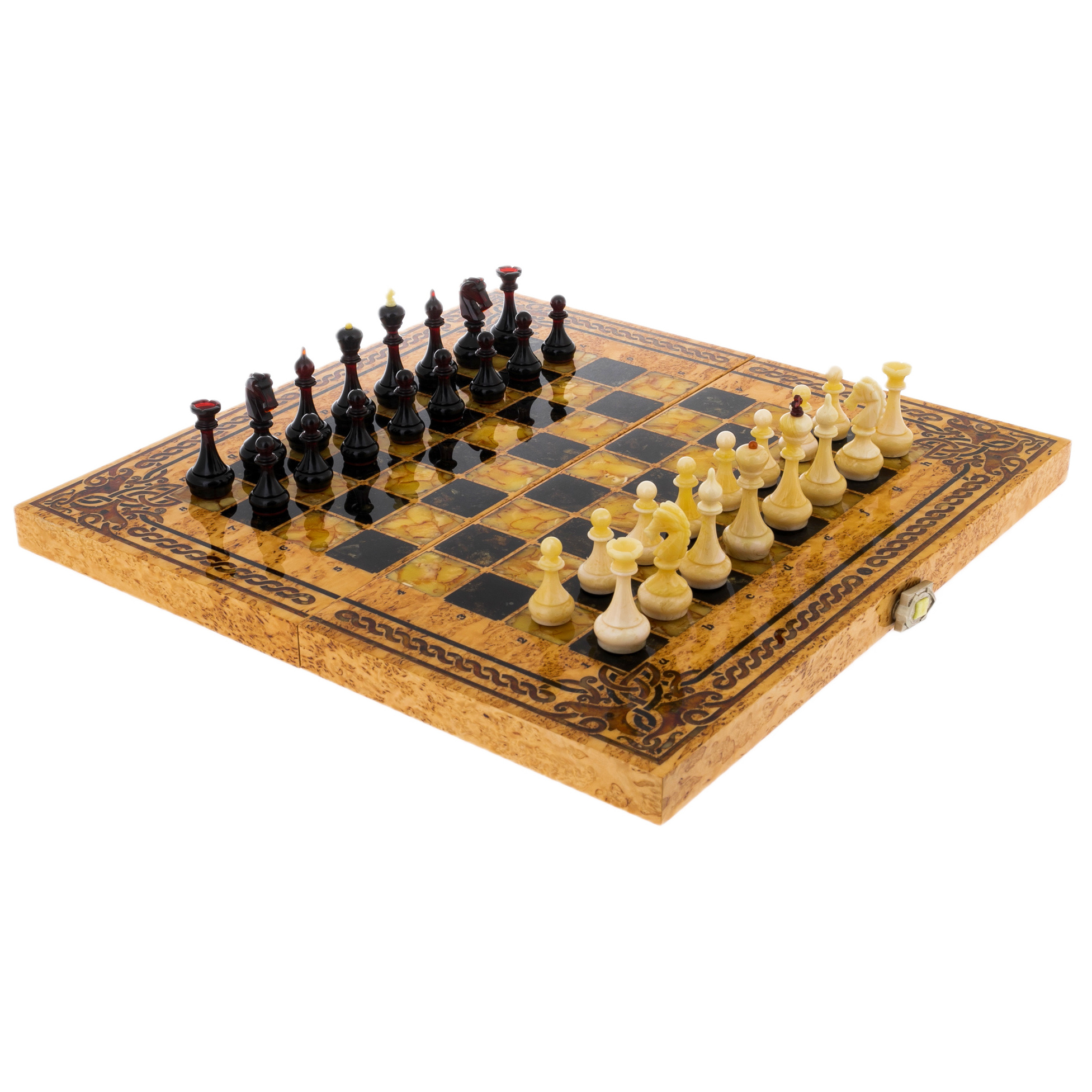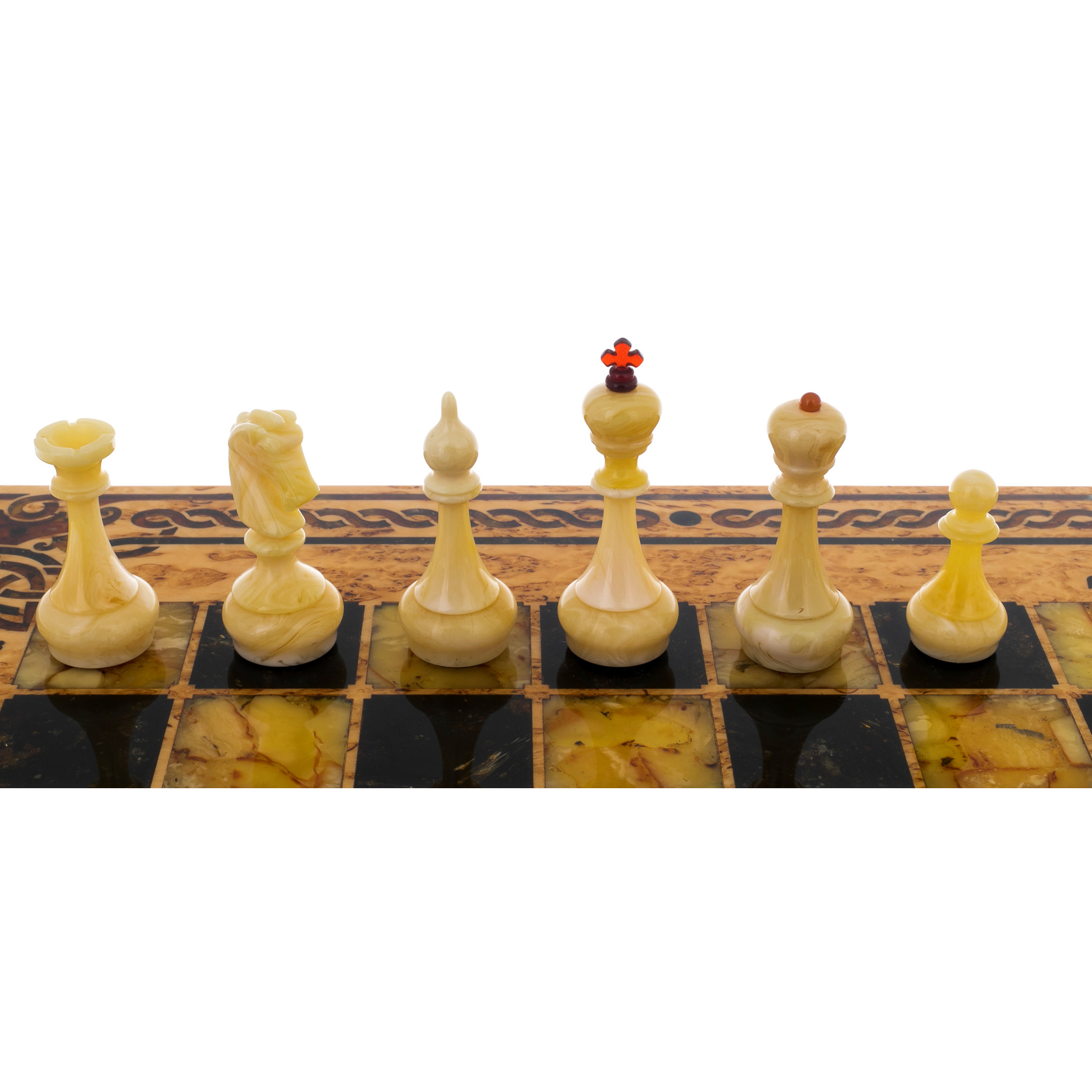 Шахматы из карельской березы и янтаря "Арабески-Тина"
