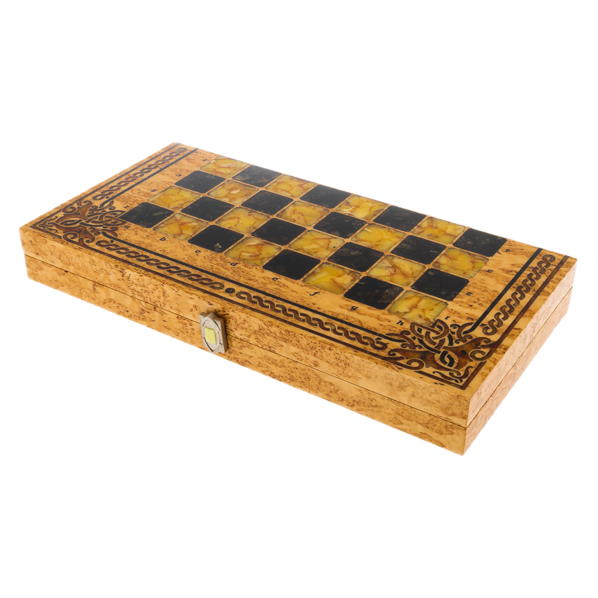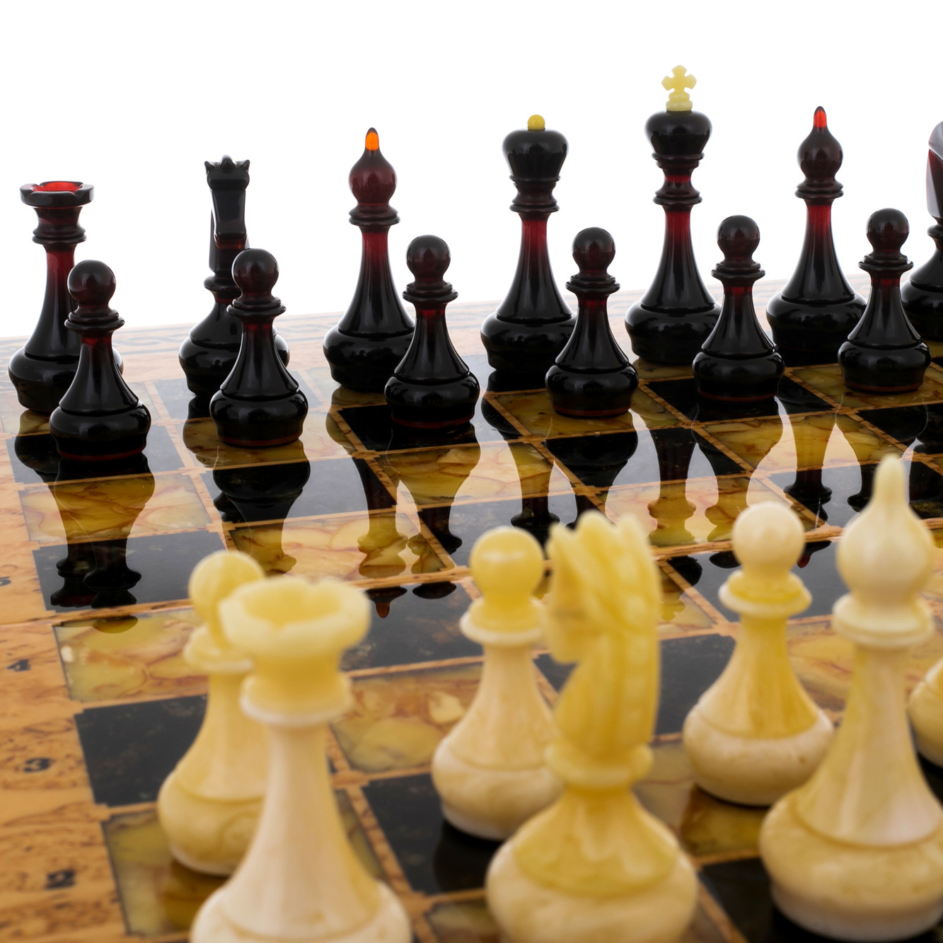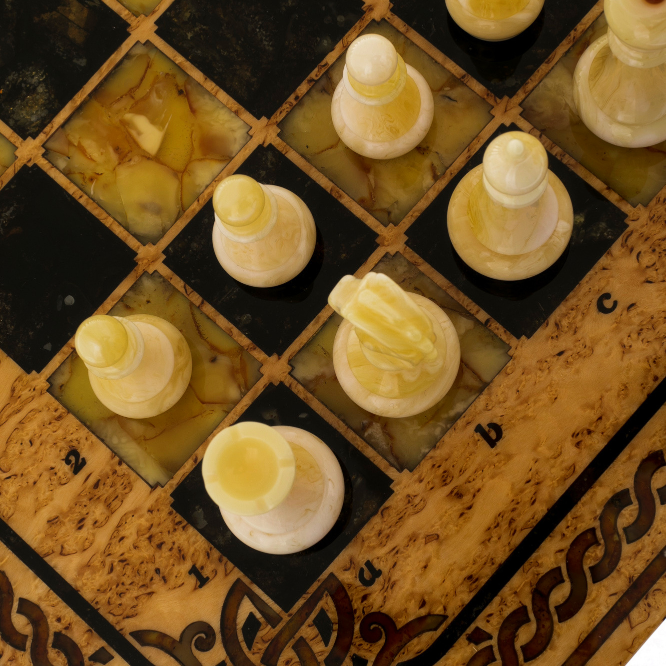 Шахматы из карельской березы и янтаря "Арабески-Тина"