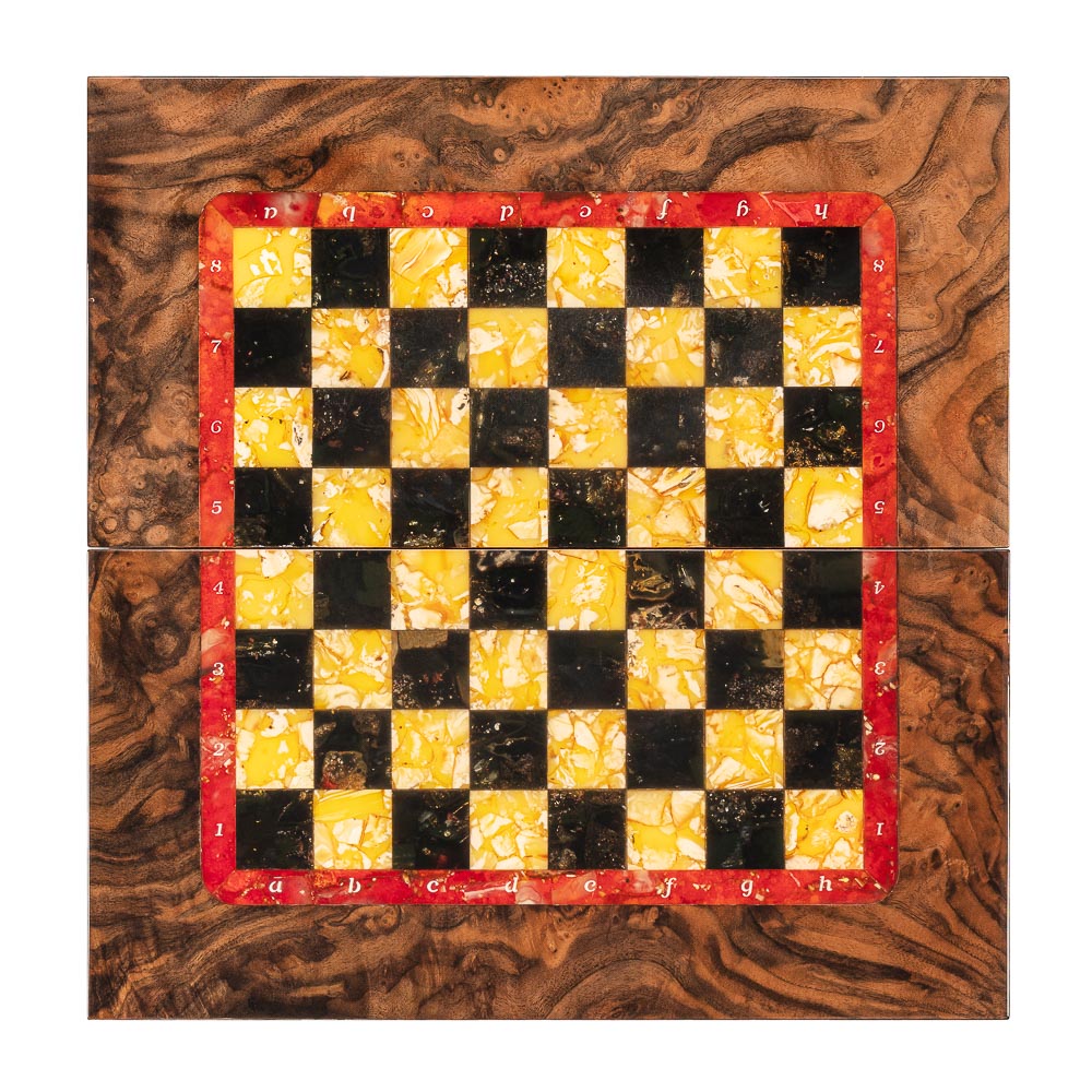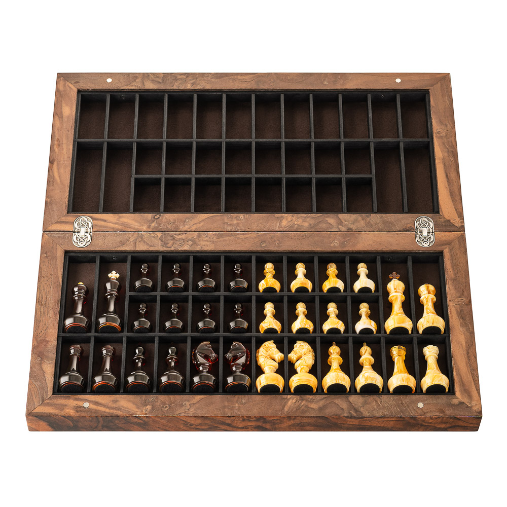 Шахматы из корня ореха и янтаря "Янтарные" мини