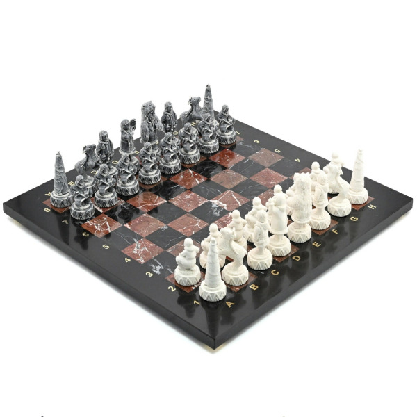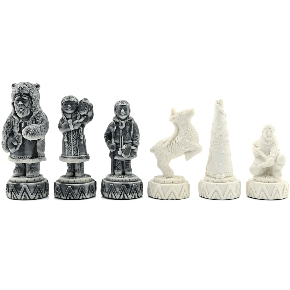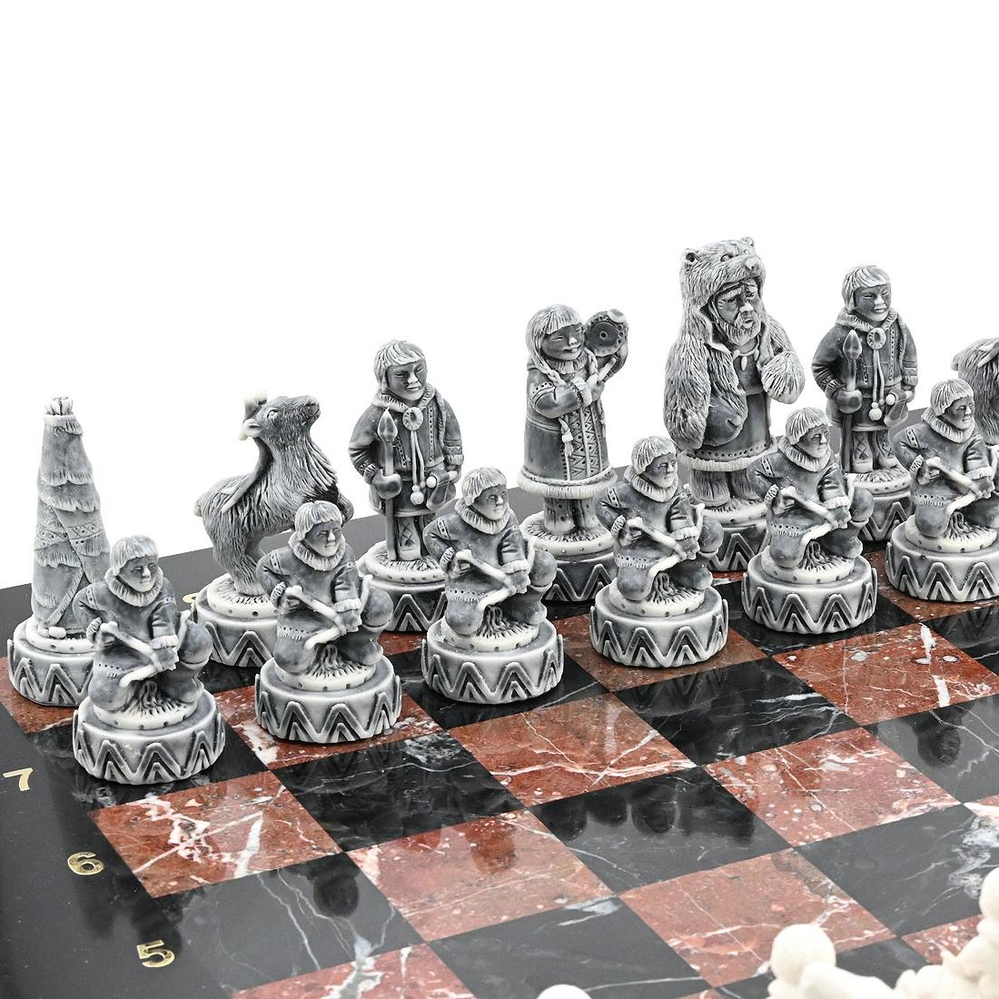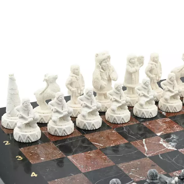 Шахматы из креноида и долерита "Северные народы" с фигурами из мрамолита